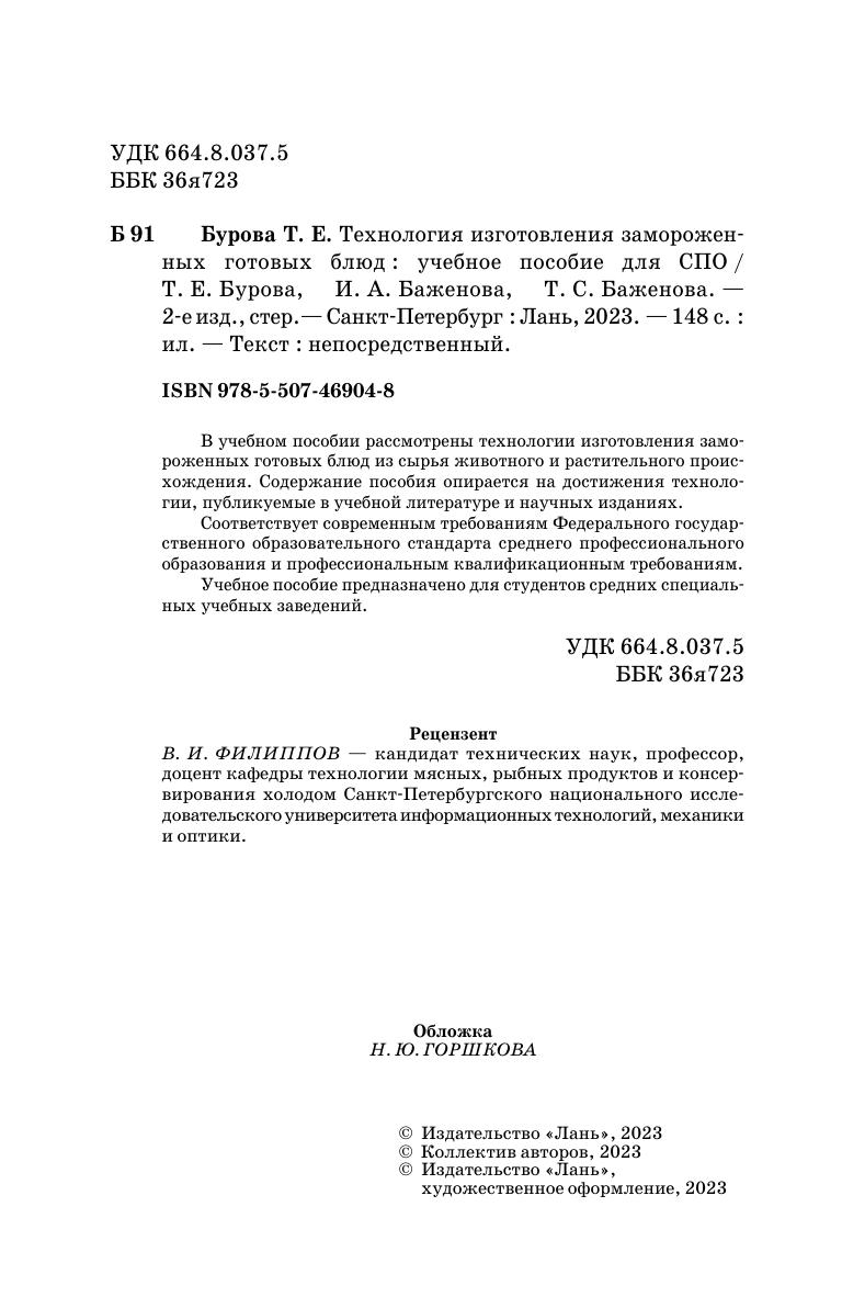 В учебном пособии рассмотрены технологии изготовления замороженных готовых блюд из сырья животного и растительного происхождения. Содержание пособия опирается на достижения технологии, публикуемые в учебной литературе и научных изданиях. Соответствует современным требованиям Федерального государственного образовательного стандарта среднего профессионального образования и профессиональным квалификационным требованиям. Учебное пособие предназначено для студентов средних специальных учебных заведений.