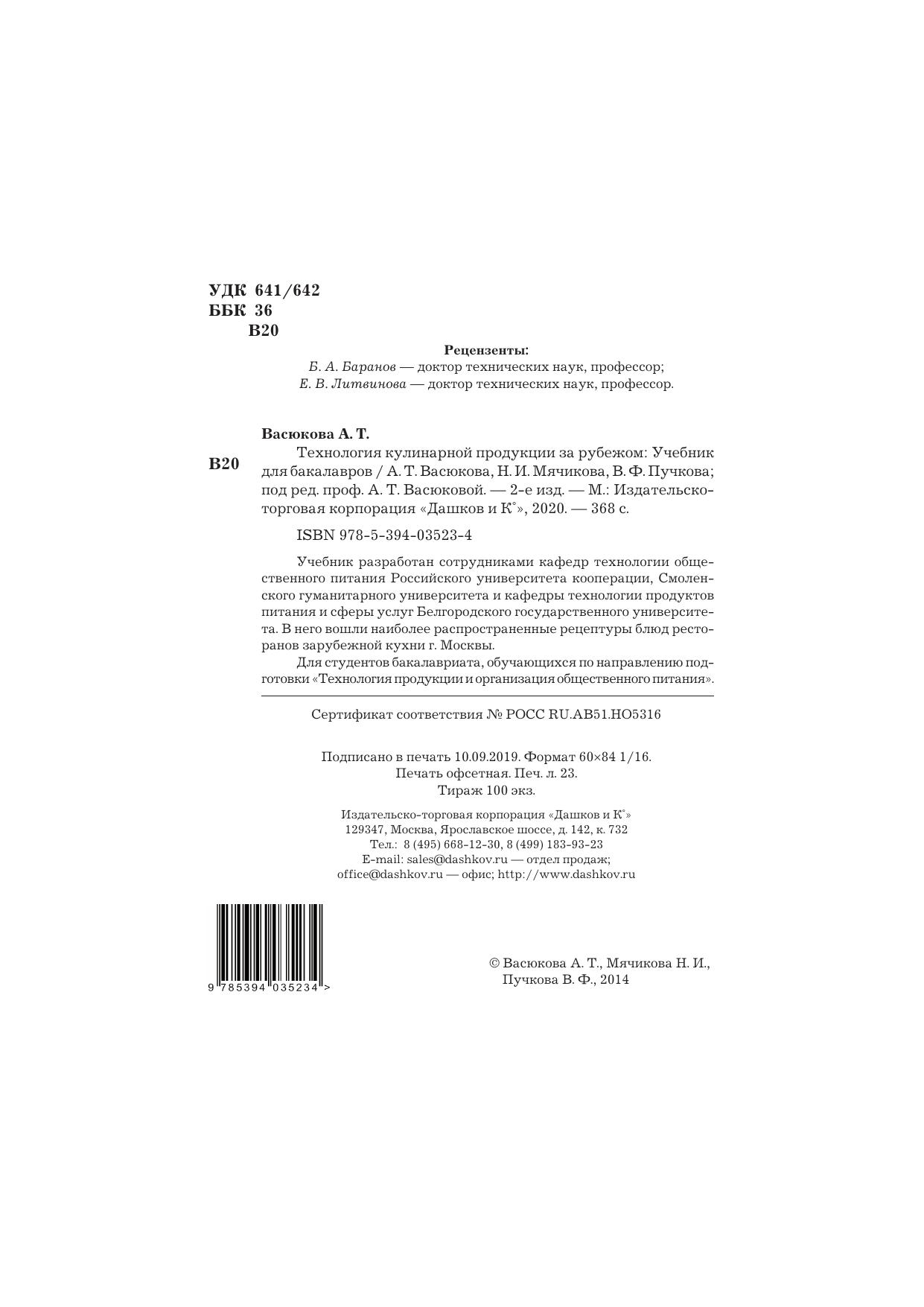 Учебник разработан сотрудниками кафедр технологии общественного питания Российского университета кооперации, Смоленского гуманитарного университета и кафедры технологии продуктов питания и сферы услуг Белгородского государственного университета. В него вошли наиболее распространенные рецепты блюд ресторанов зарубежной кухни г. Москвы. Для студентов бакалавриата, обучающихся по направлению подготовки "Технология продукции и организация общественного питания".