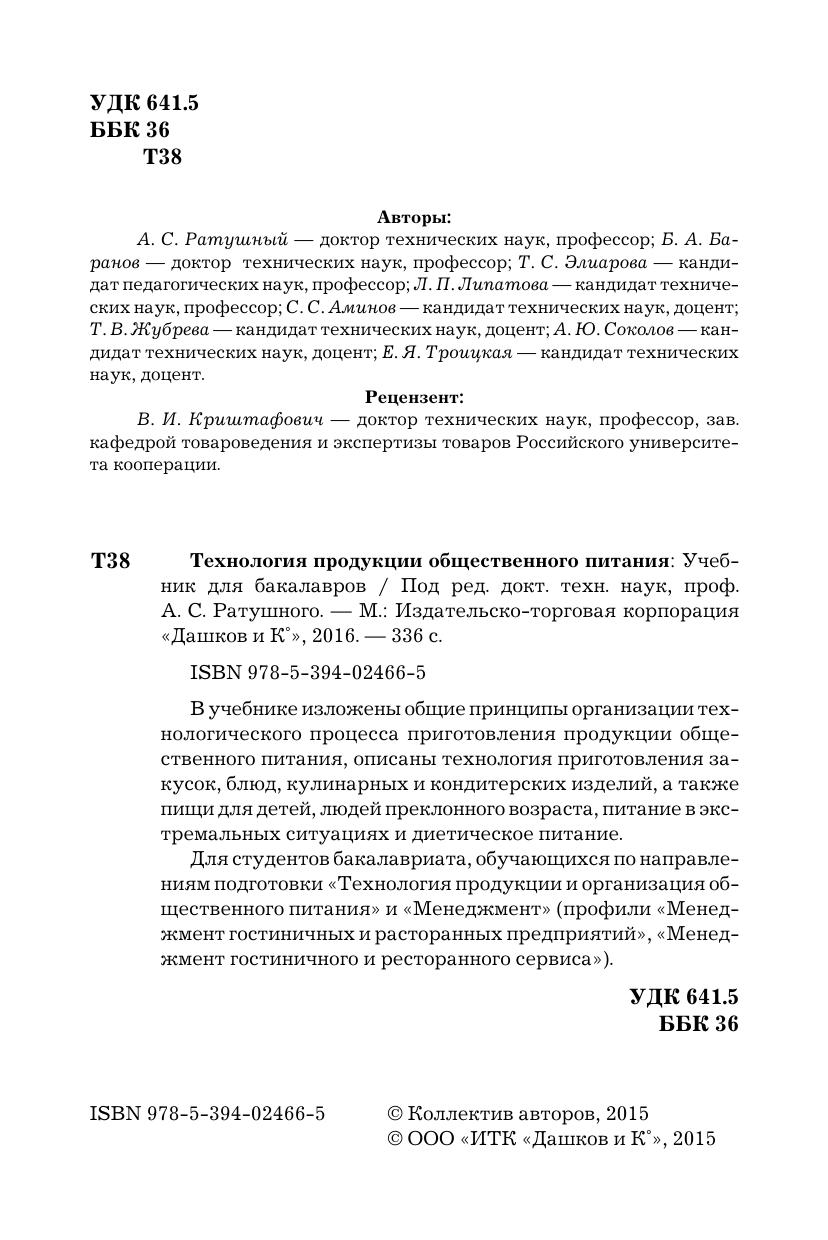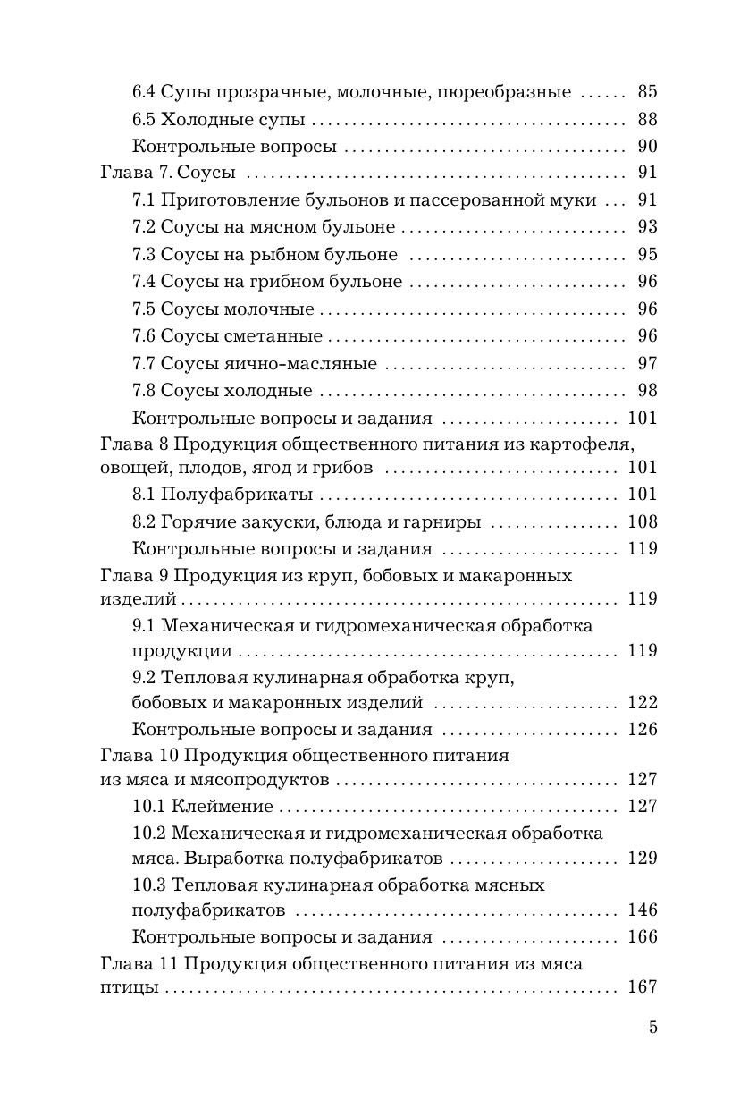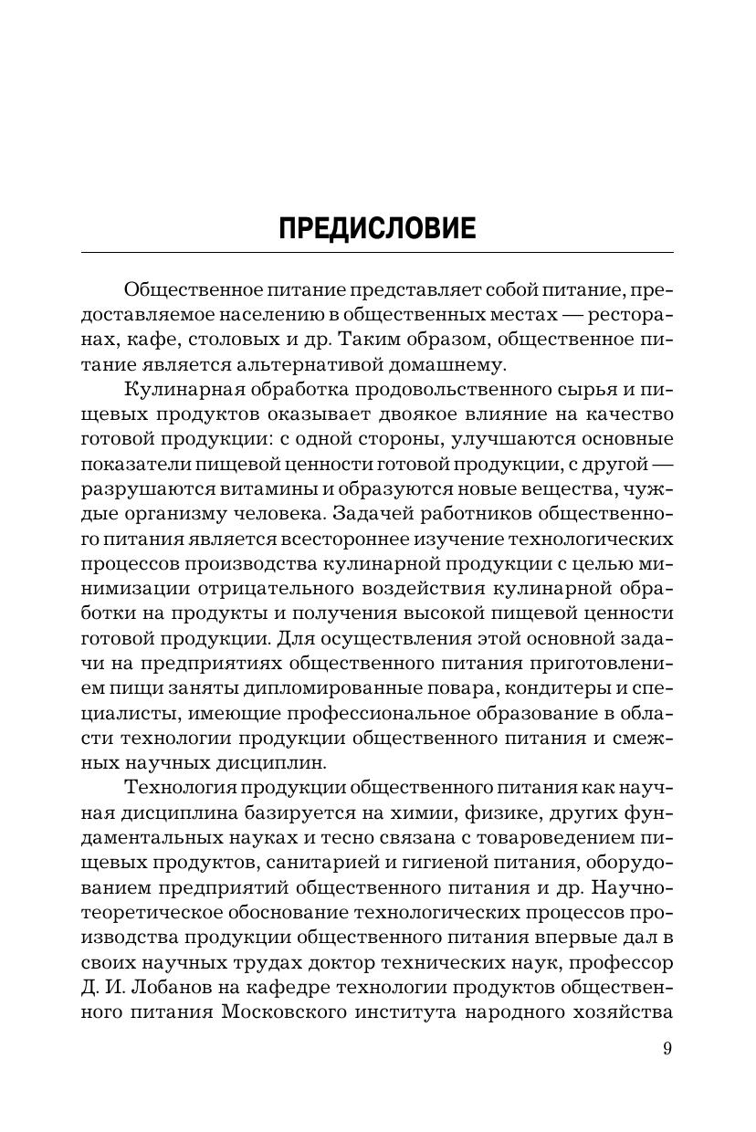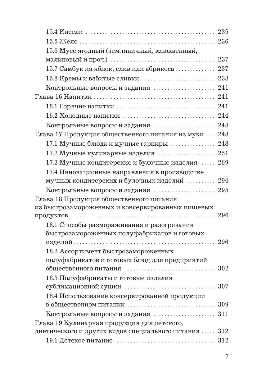 В учебнике изложены общие принципы организации технологического процесса приготовления продукции общественного питания, описаны технология приготовления закусок, блюд, кулинарных и кондитерских изделий, а также пищи для детей, людей преклонного возраста, питание в экстремальных ситуациях и диетическое питание. Для студентов бакалавриата, обучающихся по направлениям подготовки "Технология продукции и организация общественного питания" и "Менеджмент" (профили "Менеджмент гостиничного и ресторанных предприятий", "Менеджмент гостиничного и ресторанного сервиса").