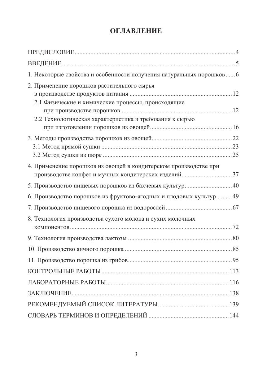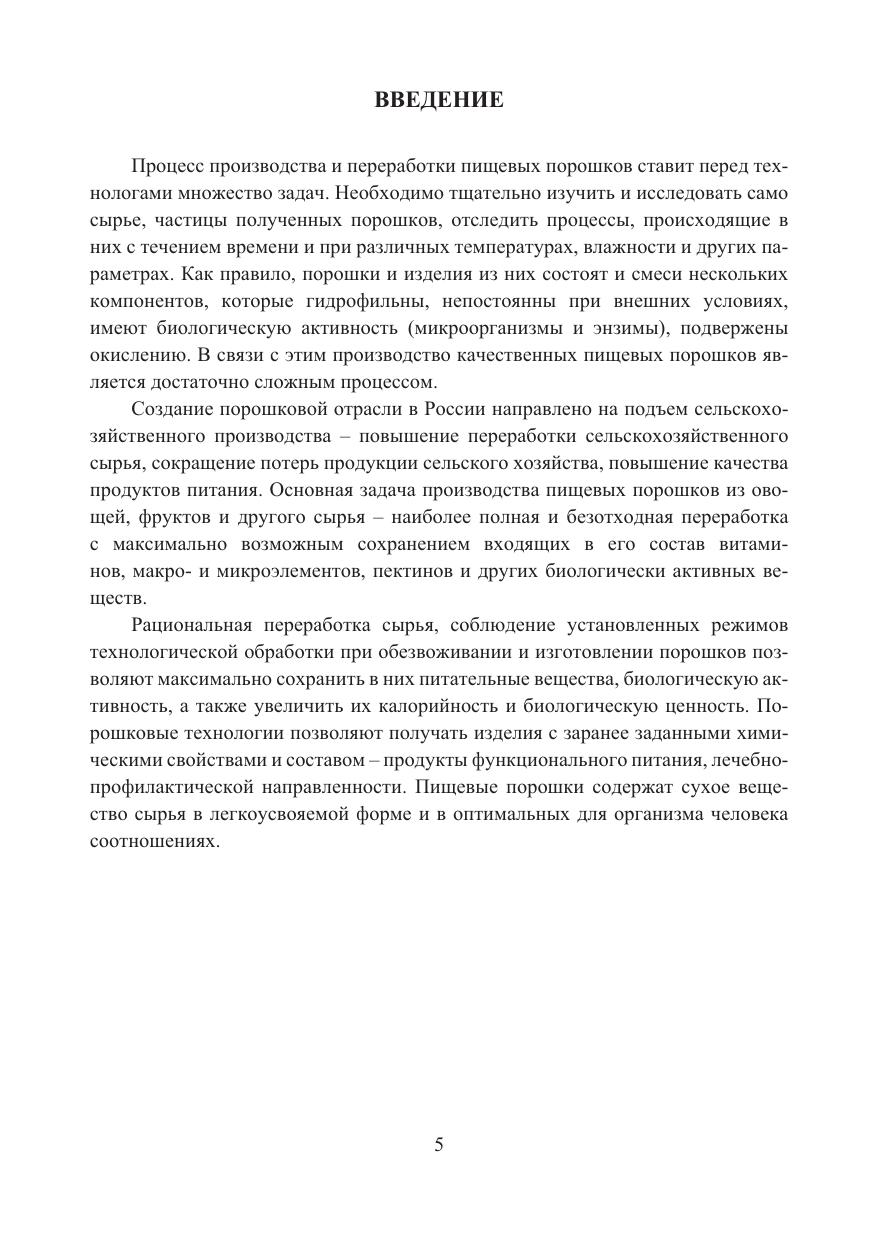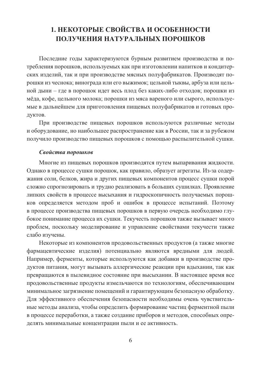 Изложены теоретические основы и практический опыт технологии производства пищевых порошков из растительного и животного сырья, а также рассмотрены серьезные проблемы производства и хранения порошков. Затронуты вопросы по пищевой и биологической ценности пищевых порошков, содержанию аминокислот, витаминов, макро- и микроэлементов.