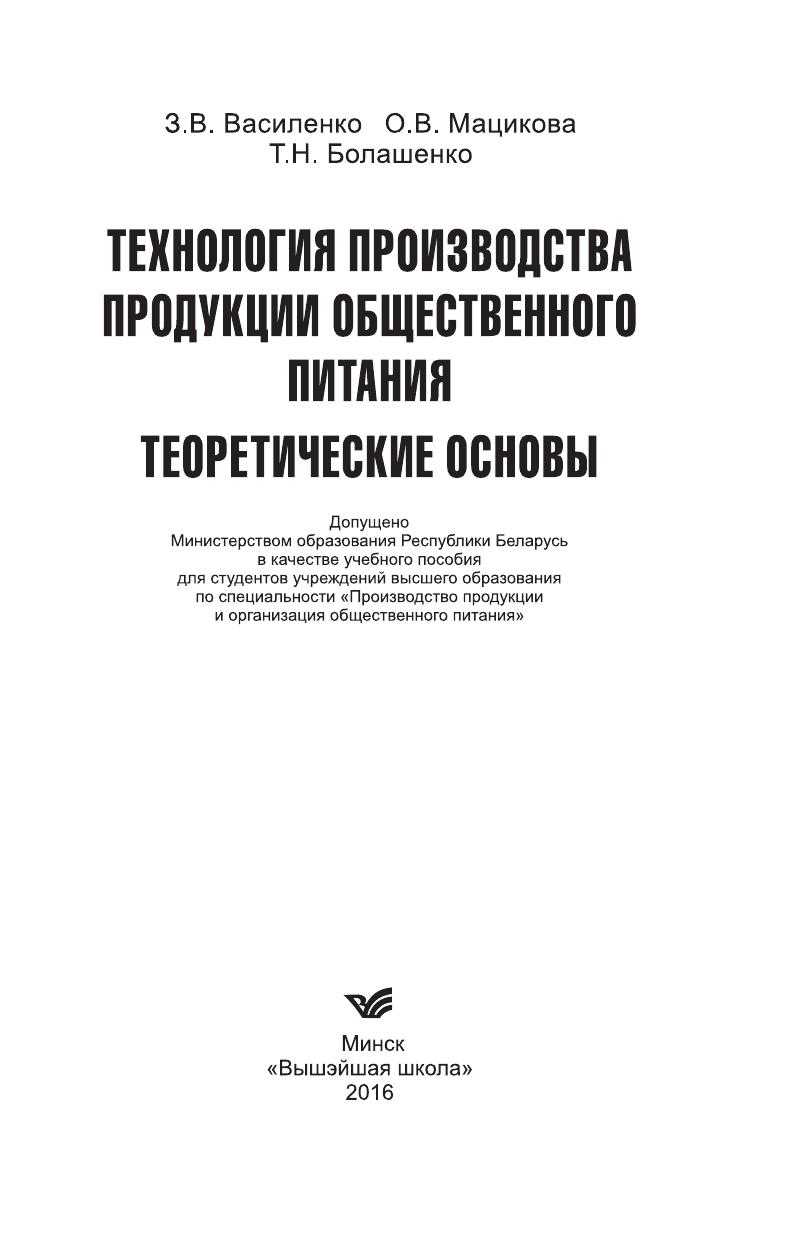 Технология производства продукции общественного питания. Теоретические основы: учебное пособие