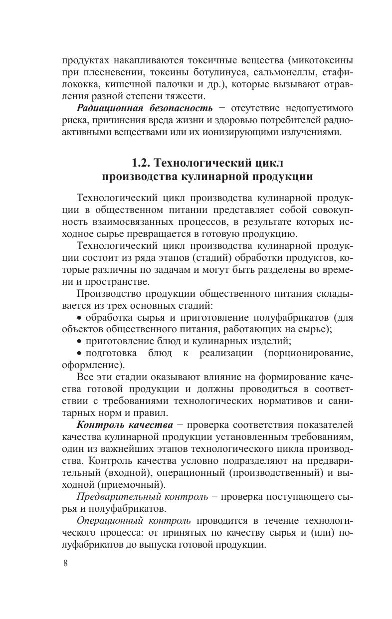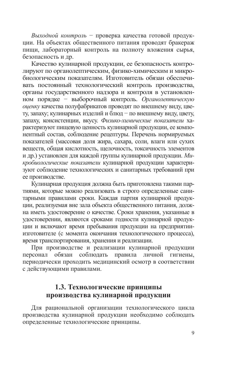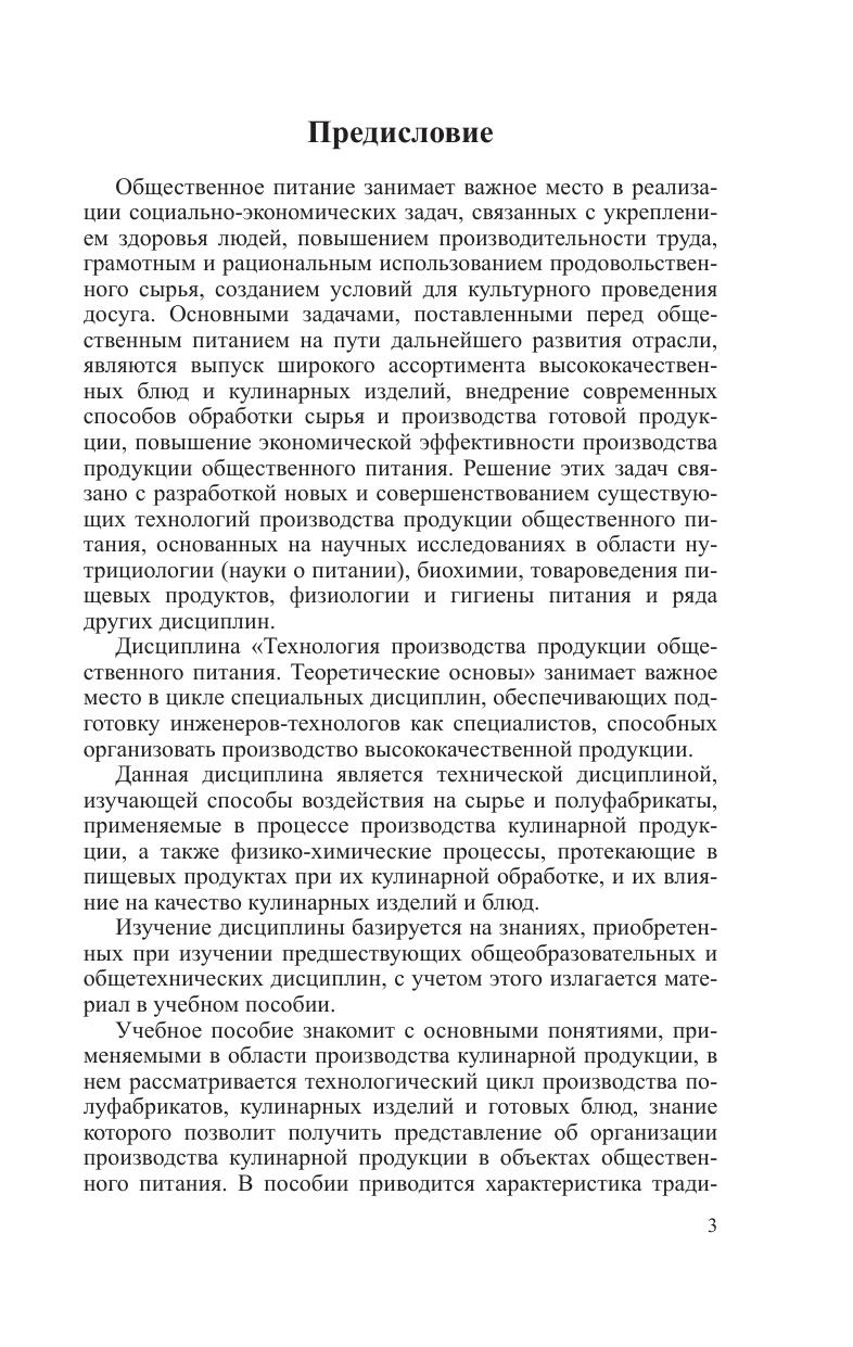 Рассматривается характеристика традиционных и современных способов кулинарной обработки сырья, пищевых продуктов и полуфабрикатов. Подробно излагаются физико-химические и структурно-механические аспекты формирования качества кулинарной продукции. Значительное внимание уделено строению и функционально-технологическим свойствам пищевых веществ, влияющих на пищевую ценность, безопасность кулинарной продукции, формирование ее структурно-механических и других характеристик. Приводятся основные понятия и термины, применяемые в области производства кулинарной продукции. Для студентов учреждений высшего образования по специальности «Производство продукции и организация общественного питания», полезно слушателям системы подготовки и переподготовки кадров, работникам сферы общественного питания.