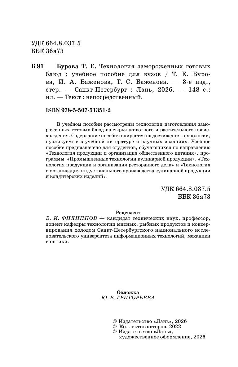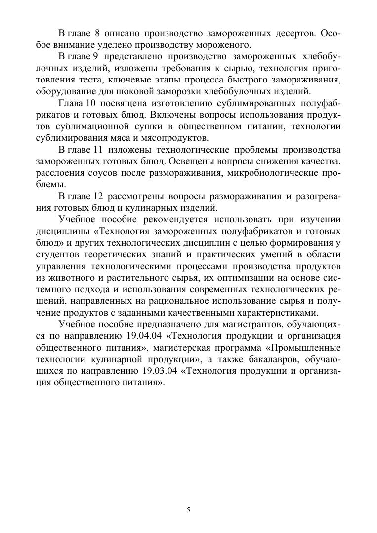 В учебном пособии рассмотрены технологии изготовления замороженных готовых блюд из сырья животного и растительного происхождения. Содержание пособия опирается на достижения технологии, публикуемые в учебной литературе и научных изданиях. Учебное пособие предназначено для студентов, обучающихся по направлению «Технология продукции и организация общественного питания», программы «Промышленные технологии кулинарной продукции», «Технология продукции и организация ресторанного дела» и «Технология и организация индустриального производства кулинарной продукции и кондитерских изделий».