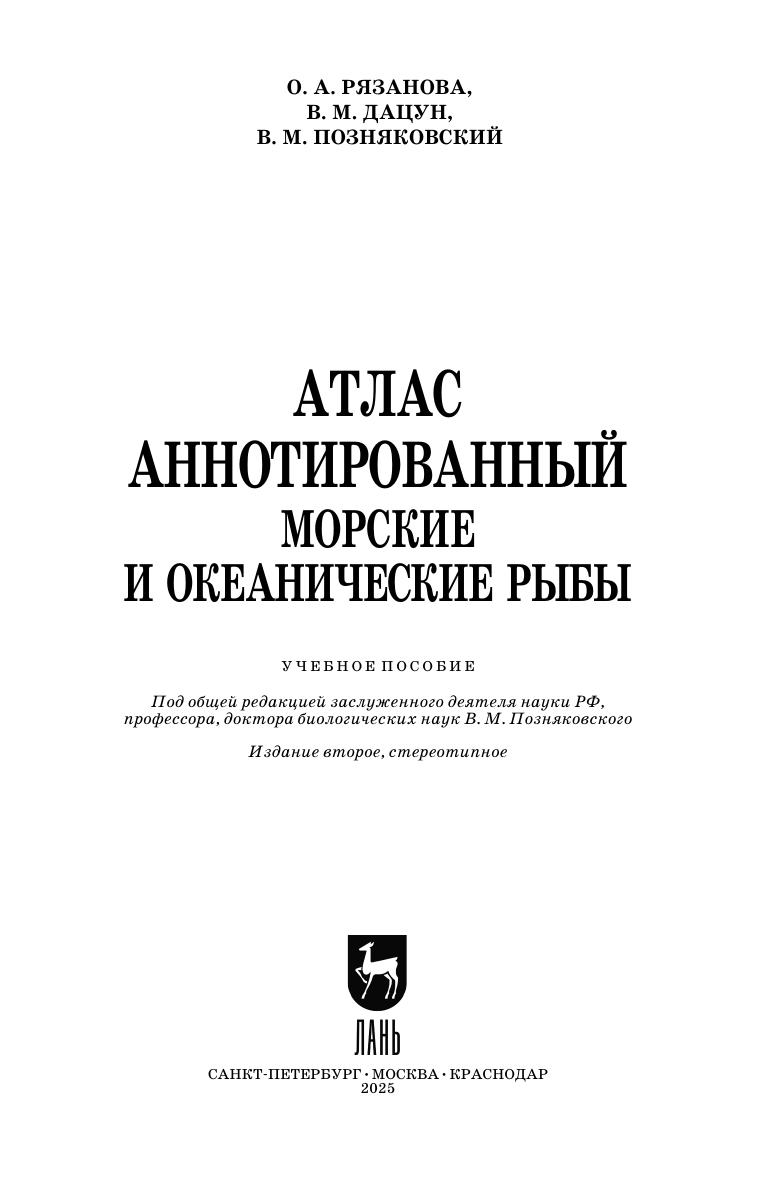 Атлас аннотированный «Морские и океанические рыбы» содержит сведения, которые не вошли в книгу «Экспертиза водных биоресурсов и продуктов их переработки. Качество и безопасность». В нем приведены русские и латинские названия рыб различных семейств и их важнейших представителей, имеющих наибольшее промысловое значение, идентификационные признаки каждого вида, а также возможные направления их использования. Атлас предназначен для широкого круга специалистов пищевой и рыбной промышленности, занимающихся промыслом, переработкой и реализацией рыбы и нерыбных продуктов, а также для работников рыбоохранных организаций, торговли и общественного питания. Он будет полезен для студентов колледжей и техникумов. Соответствует современным требованиям Федерального государственного образовательного стандарта среднего профессионального образования и профессиональным квалификационным требованиям.