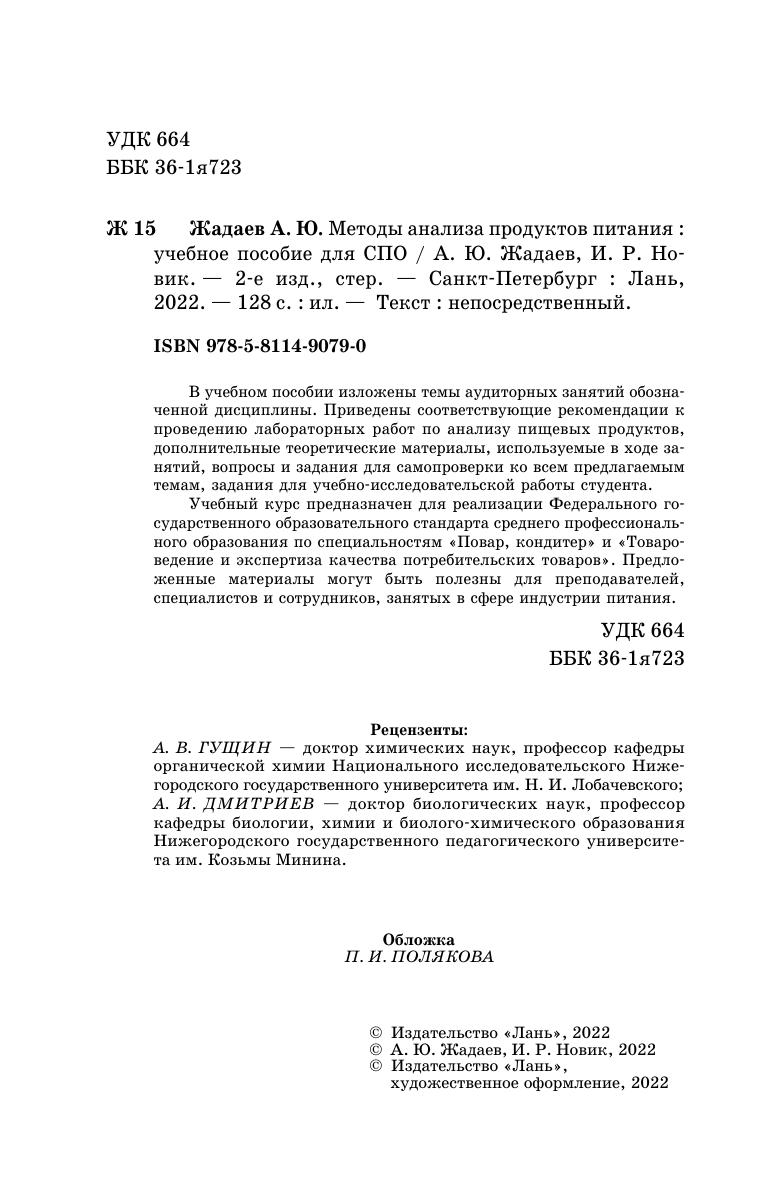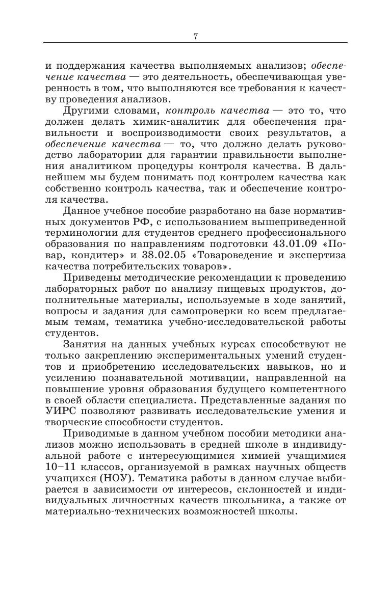 В учебном пособии изложены темы аудиторных занятий обозначенной дисциплины. Приведены соответствующие рекомендации к проведению лабораторных работ по анализу пищевых продуктов, дополнительные теоретические материалы, используемые в ходе занятий, вопросы и задания для самопроверки ко всем предлагаемым темам, задания для учебно-исследовательской работы студента.