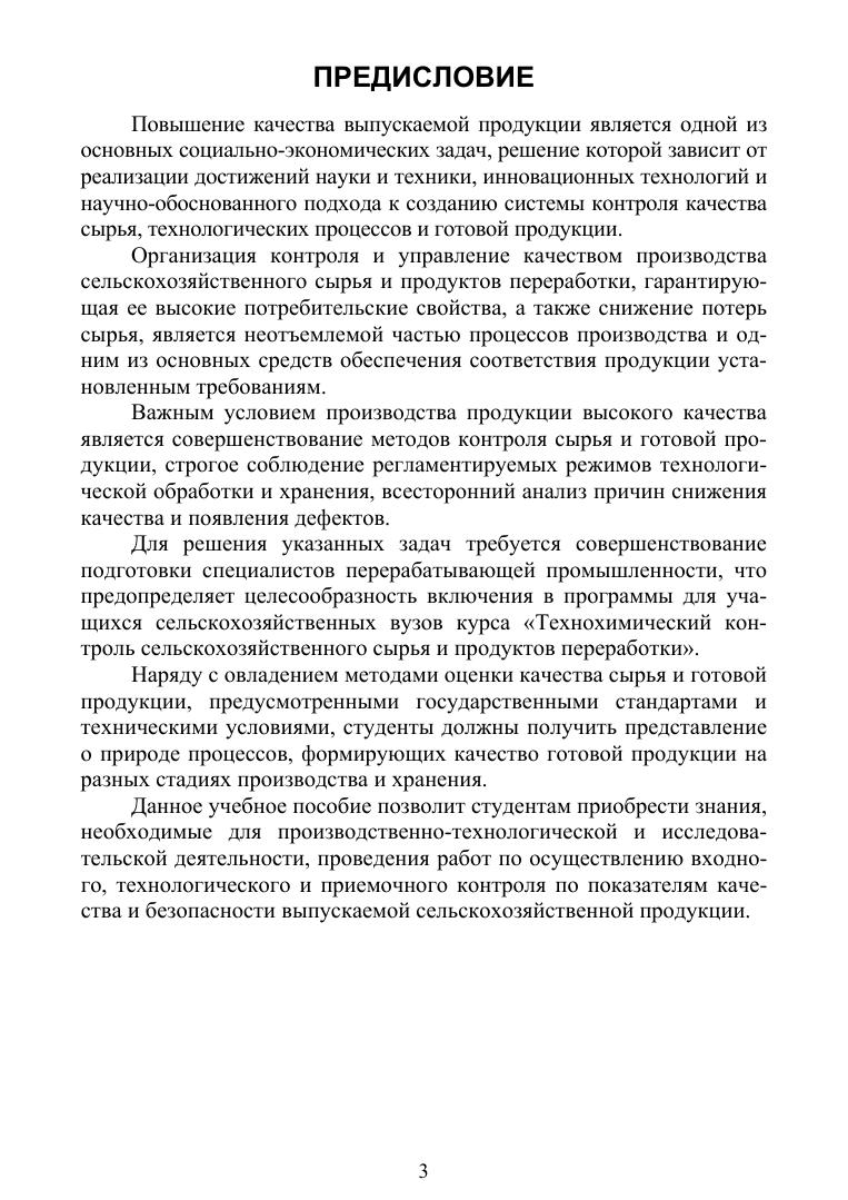 В учебном пособии изложены основные требования к испытательным производственным лабораториям, описаны виды и методы контроля качества сельскохозяйственного сырья и продуктов его переработки. Рассмотрены основные методы лабораторных исследований, приведены сведения по отбору проб и подготовке их к анализу. Даны требования нормативной и технологической документации по органолептической и физико-химической оценке качества сырья животного и растительного происхождения, а также продуктов их переработки. Учебное пособие подготовлено в соответствии с требованиями ФГОС ВО для студентов высших учебных заведений, обучающихся по направлению подготовки «Продукты питания животного происхождения», «Биотехнология», «Технология производства и переработки сельскохозяйственной продукции», «Зоотехния», а также будет полезна аспирантам и специалистам по производству и переработке сельскохозяйственного сырья.