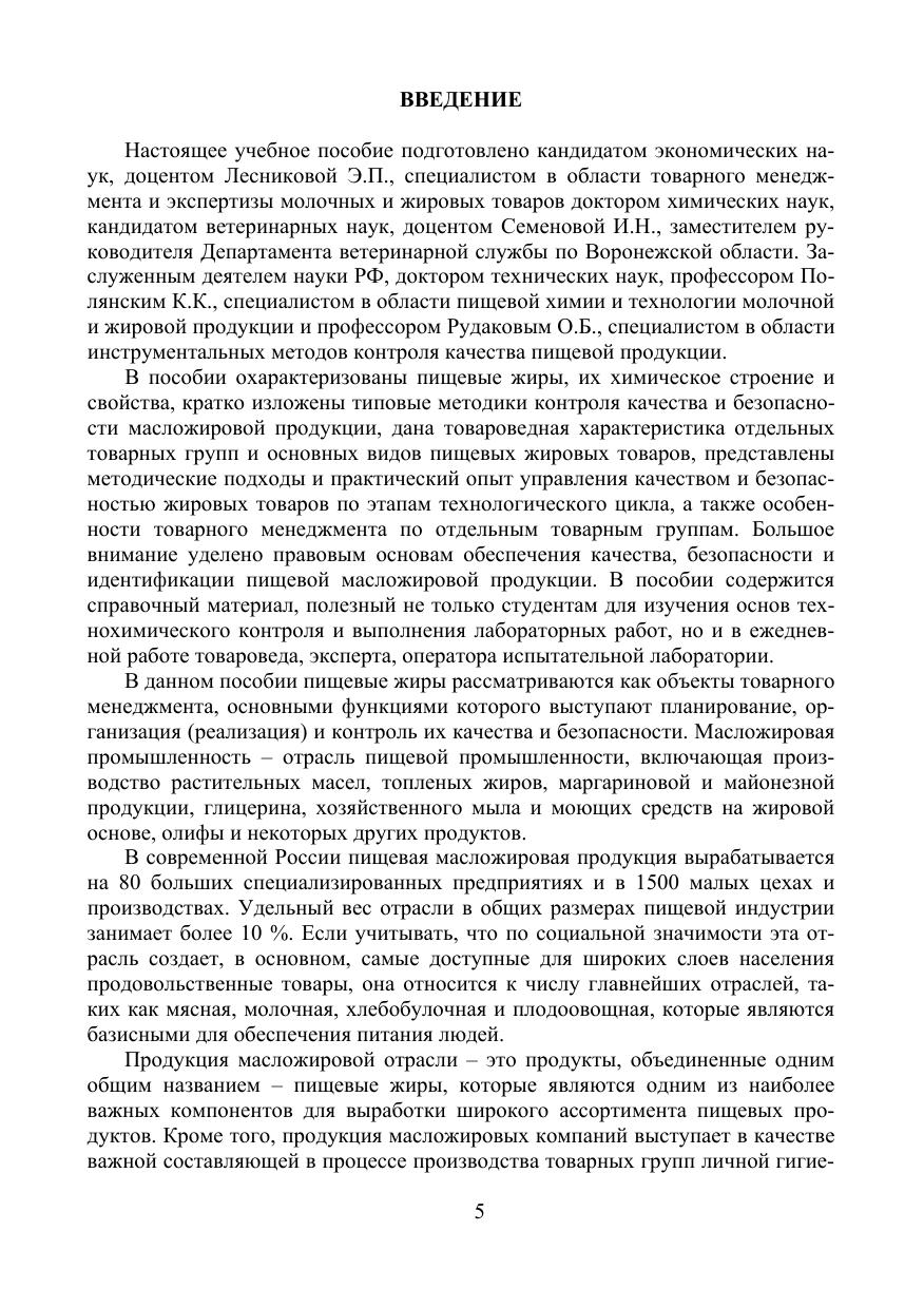В учебном пособии рассмотрены состав, строение и потребительские свойства жиров, схемы производства пищевых жиров на основе принципов менеджмента качества, представлены типовые методики технохимического контроля по стадиям производства жиров, методики определения показателей качества масложировой продукции, представлены материалы действующих систем менеджмента качества предприятий масложировой промышленности, даны приемы проверки качества и подлинности пищевых жиров, обнаружения их фальсификации, представлены методические подходы и практический опыт управления качеством и безопасностью жировых товаров в торговле.