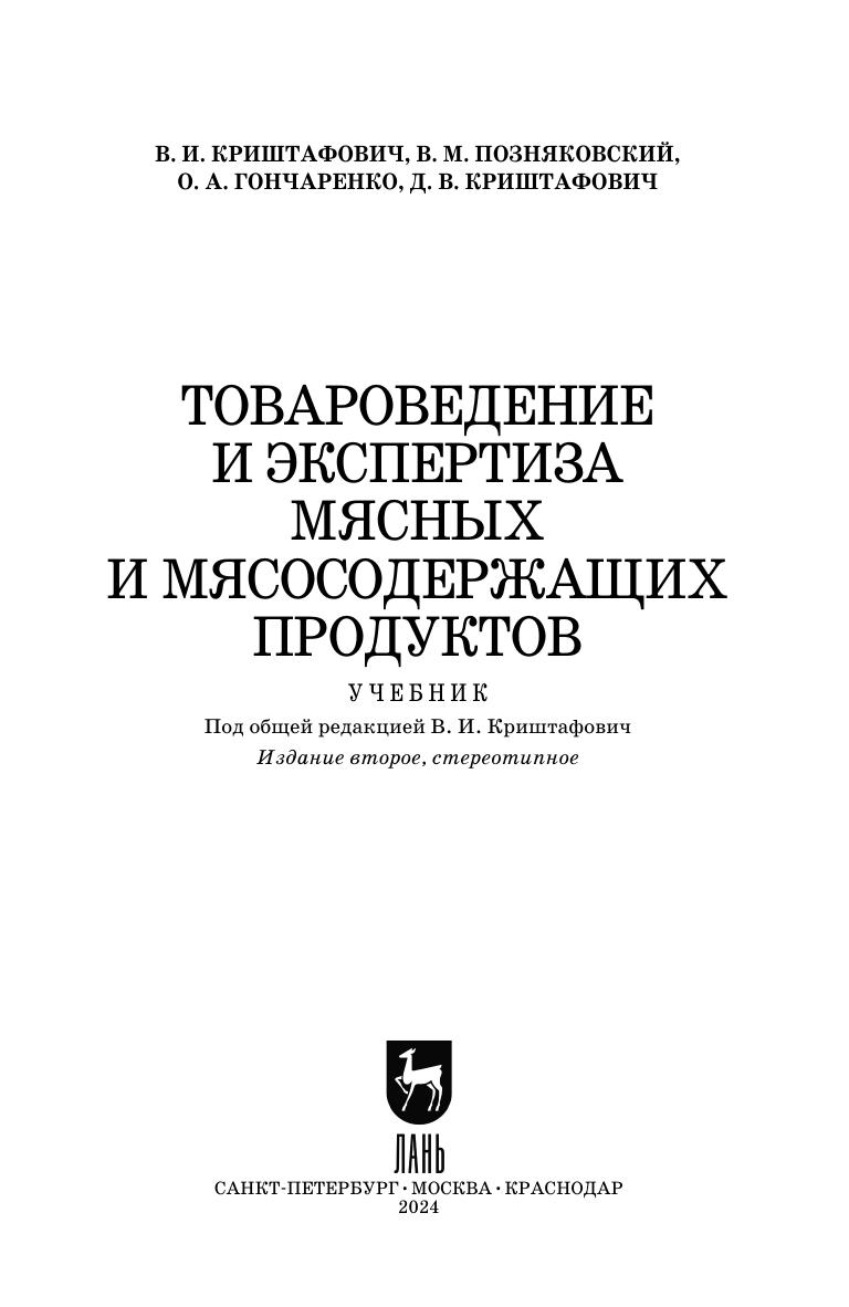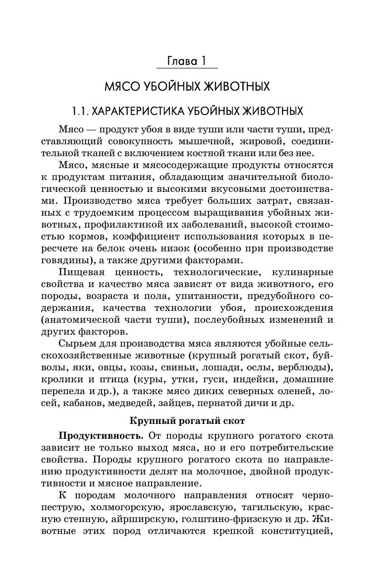 Рассмотрена товароведная характеристика мяса убойных животных и птицы, субпродуктов, колбасных изделий и продуктов из мяса, консервов, мясных полуфабрикатов, пищевых яиц и яичных продуктов. Описаны способы холодильной обработки мяса. Особое внимание уделено формированию качества мясных продуктов в процессе производства, а также изменению их потребительских свойств при хранении. Приведены классификация и характеристика ассортимента основных групп мясных продуктов, требования к их качеству, экспертиза качества мяса и мясных товаров. Соответствует современным требованиям Федерального государственного образовательного стандарта среднего профессионального образования и профессиональным квалификационным требованиям. Для студентов колледжей и техникумов, преподавателей, работников торговли.