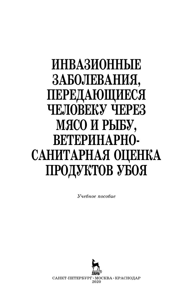 В учебном пособии охарактеризованы основные инвазионные заболевания сельскохозяйственных животных и рыбы, представляющие опасность для человека, так как они могут вызвать у него заболевания, передающиеся через сырье и пищевые продукты. Отражен порядок исследования туш и органов сельскохозяйственных животных при инвазионных болезнях, передающихся человеку через продукты убоя, дана дифференциальная диагностика этих заболеваний, особенности патологических изменений органов больных животных, клинические проявления данных заболеваний у людей, меры профилактики. Приведены циклы развития паразитов.