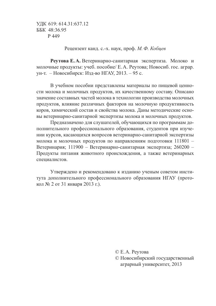 В учебном пособии представлены материалы по пищевой ценности молока и молочных продуктов, их качественному составу. Описано значение составных частей молока в технологии производства молочных продуктов, влияние различных факторов на молочную продуктивность коров, химический состав и свойства молока. Даны методические основы ветеринарно-санитарной экспертизы молока и молочных продуктов. Предназначено для слушателей, обучающихся по программам дополнительного профессионального образования, студентов при изучении курсов, касающихся вопросов ветеринарно-санитарной экспертизы молока и молочных продуктов по направлениям подготовки 111801 – Ветеринария, 111900 – Ветеринарно-санитарная экспертиза, 260200 – Продукты питания животного происхождения, а также ветеринарных специалистов.