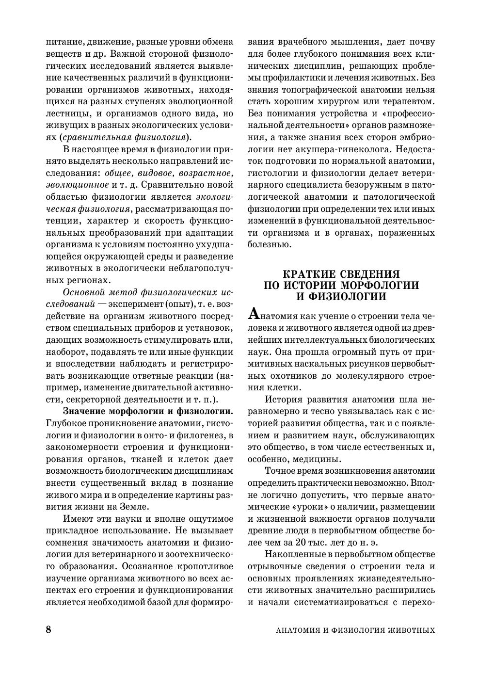 Приведены сведения по цитологии, эмбриологии, гистологии, анатомии и физиологии животных с учетом достижений отечественной и зарубежной науки. Терминология соответствует 5-й редакции Международной номенклатуры (СПб.: Лань, 2013). Соответствует современным требованиям Федерального государственного образовательного стандарта среднего профессионального образования и профессиональным квалификационным требованиям. Учебник предназначен для учащихся средних специальных учебных заведений, обучающихся по специальностям «Ветеринария», «Зоотехния» и «Кинология».