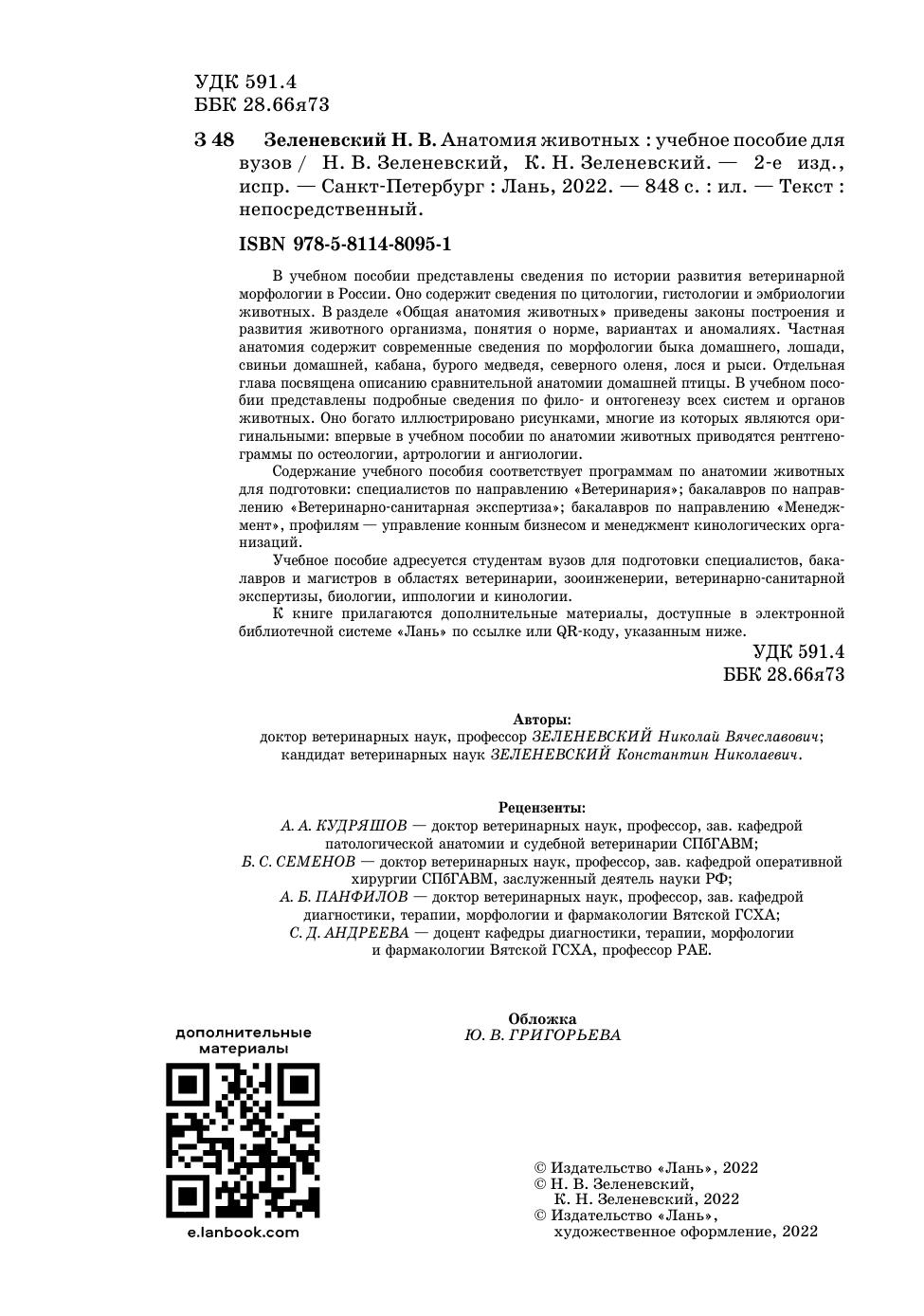 Содержание учебного пособия соответствует программам по анатомии животных для подготовки: специалистов по направлению «Ветеринария»; бакалавров по направлению «Ветеринарно_санитарная экспертиза»; бакалавров по направлению «Менеджмент», профилям — управление конным бизнесом и менеджмент кинологических организаций.