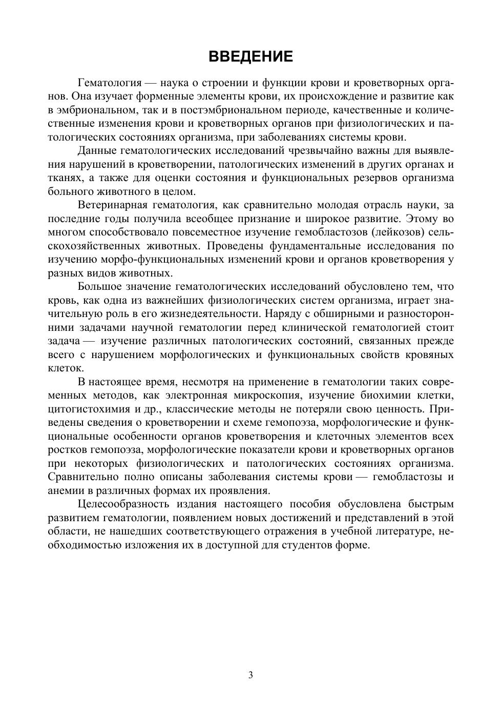 Пособие включает современные сведения о кроветворении, нарушении процессов эритро-, лейко-, тромбоцитопоэза, системы гемостаза, о типовых формах патологии и реактивных изменениях общего объема, соотношения плазмы и форменных элементов крови, систем эритроцитов, лейкоцитов, тромбоцитов, гемостаза, а также вопросы, касающиеся гематологической картины и основных проявлений наиболее распространенных видов анемий, эритроцитозов, лейкоцитозов, лейкозов, гемостазиопатий и других расстройств системы крови.Пособие предназначено для студентов высших учебных заведений, обучающихся по специальности Ветеринария, направлениям подготовки бакалавриата и магистратуры Зоотехния, Ветеринарно-санитарная экспертиза, студентов факультетов медико-биологического профиля, а также для аспирантов и молодых ученых.