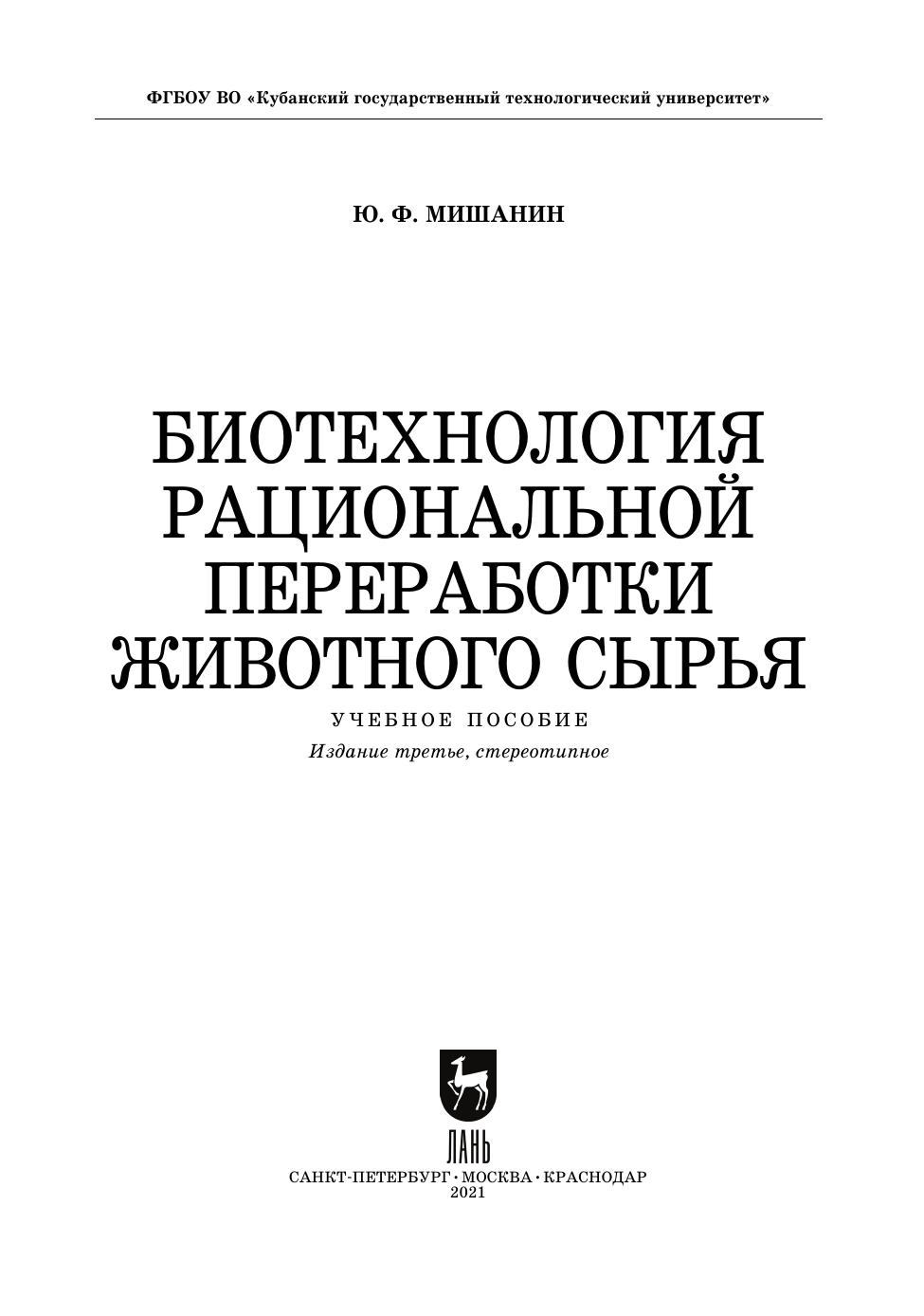 Биотехнология рациональной переработки животного сырья