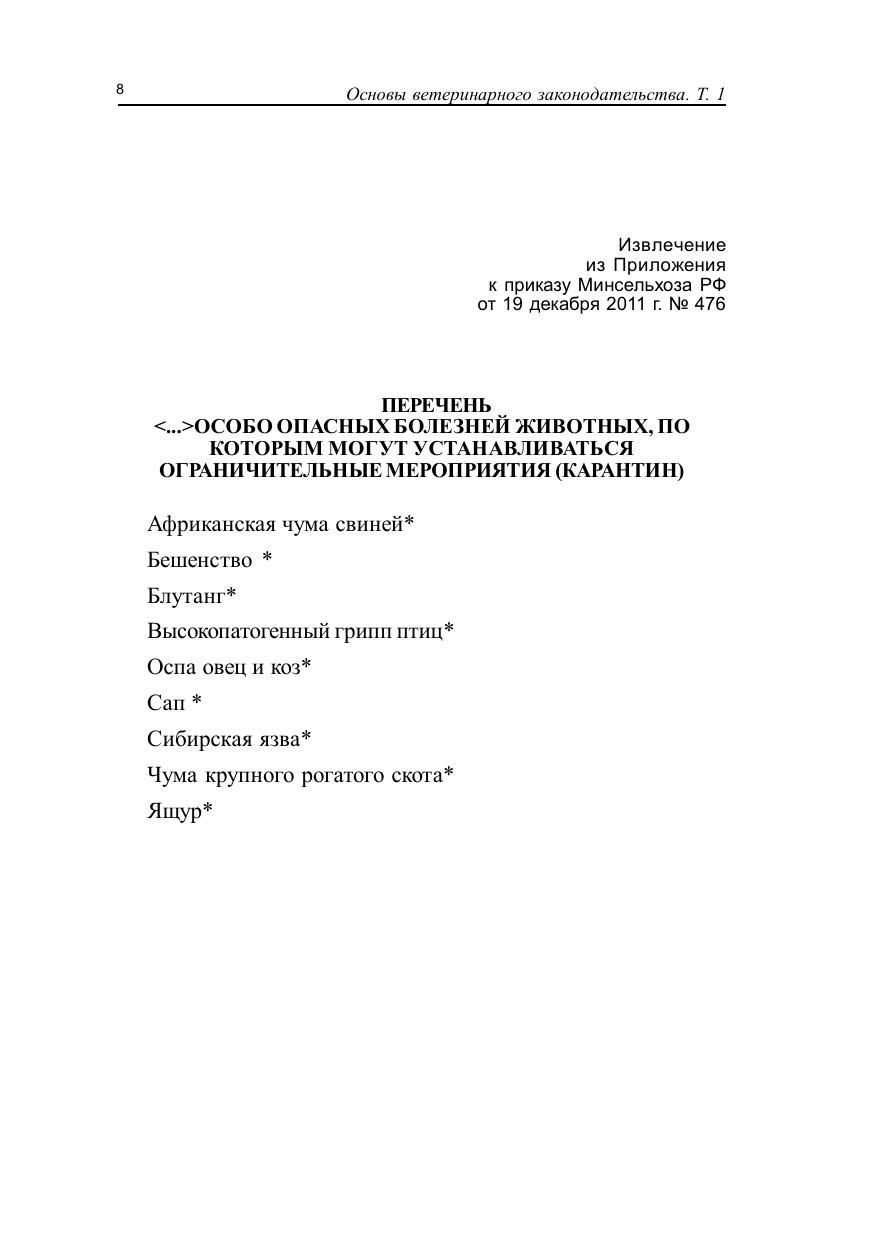 Основы ветеринарного законодательства. Том 1. Особо опасные болезни животных