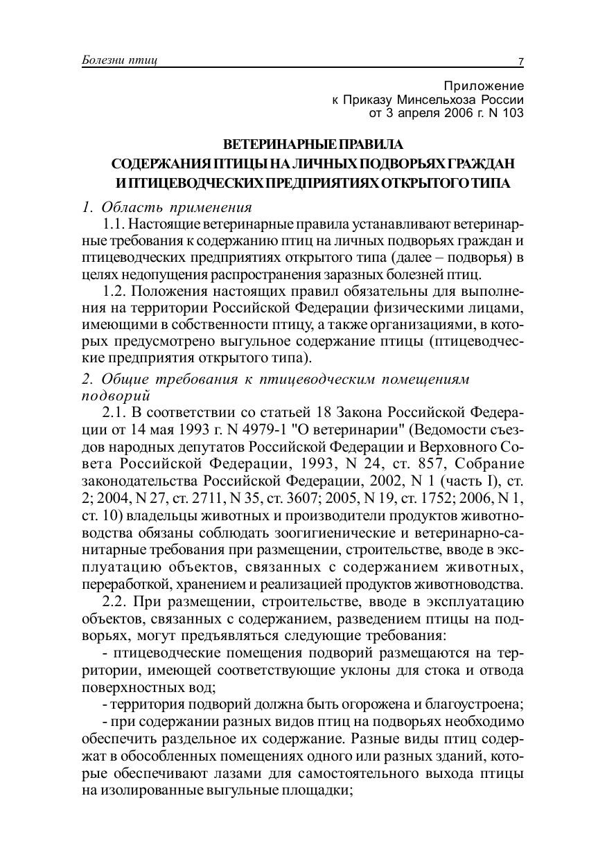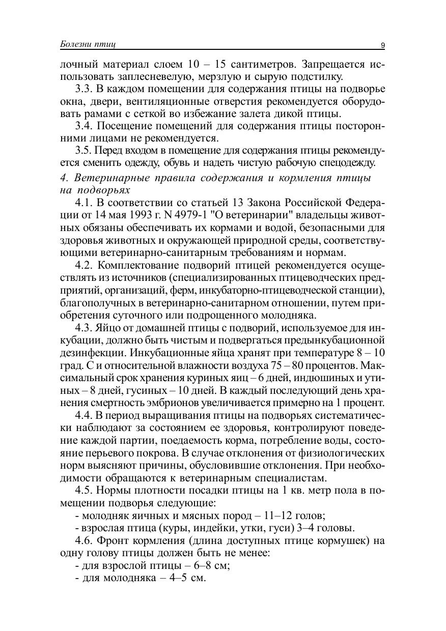 Дана характеристика болезней и тексты правил и инструкций по их профилактике и ликвидации. Приведены ветеринарные правила содержания птицы.