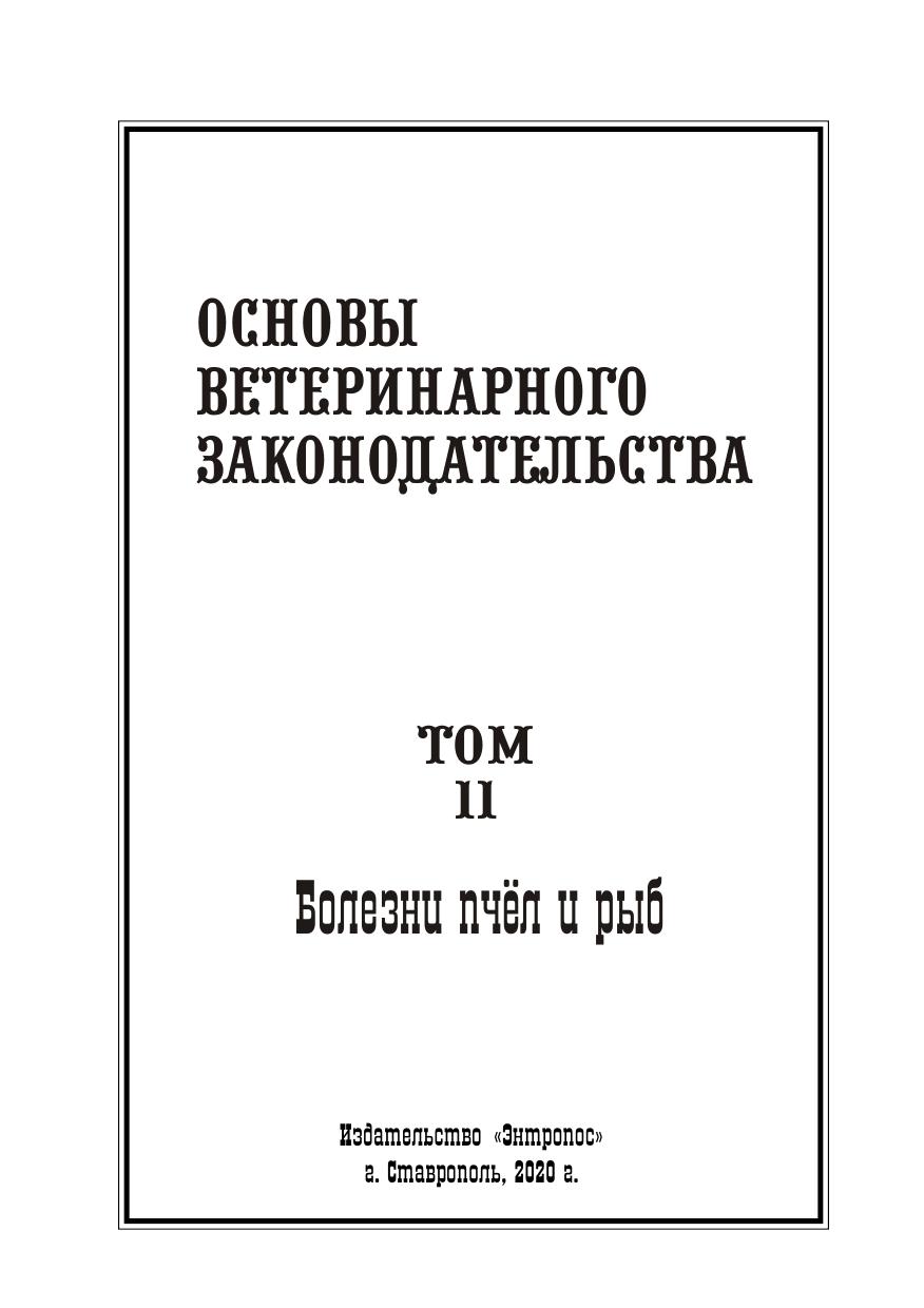 Основы ветеринарного законодательства. Том 11. Болезни пчел и рыб