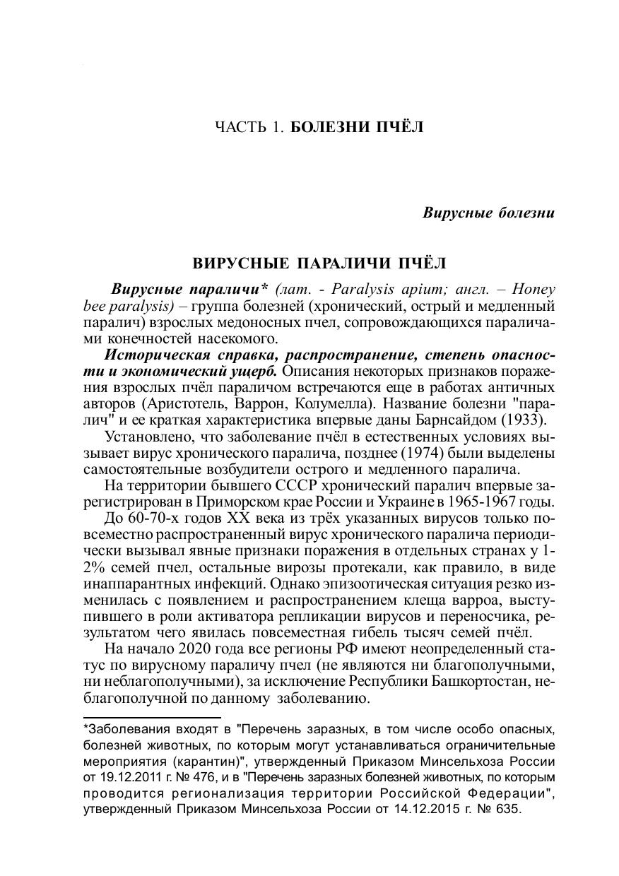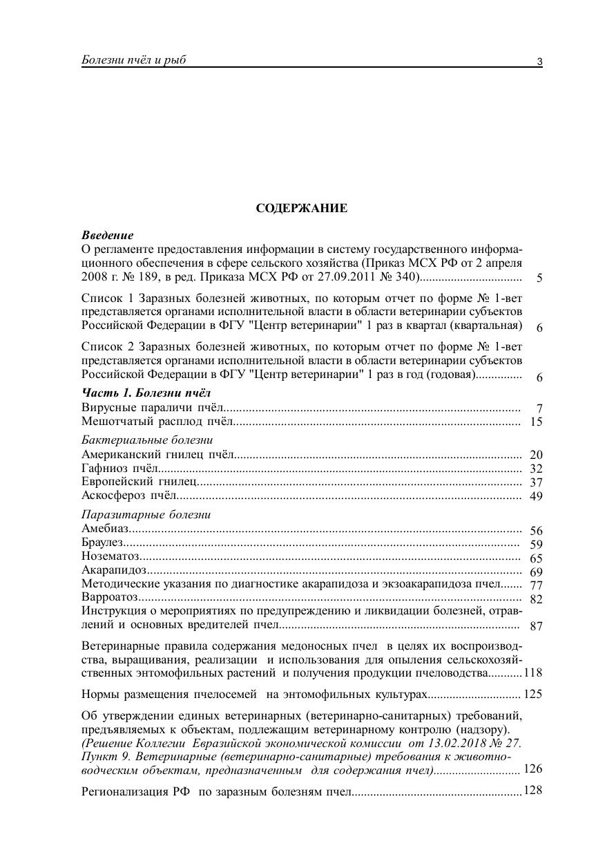 Приведены действующие ветеринарные требования к объектам, предназначенным для содержания пчел и рыбы, а также критерии определения статуса региона по заразным болезням пчел и рыб.
