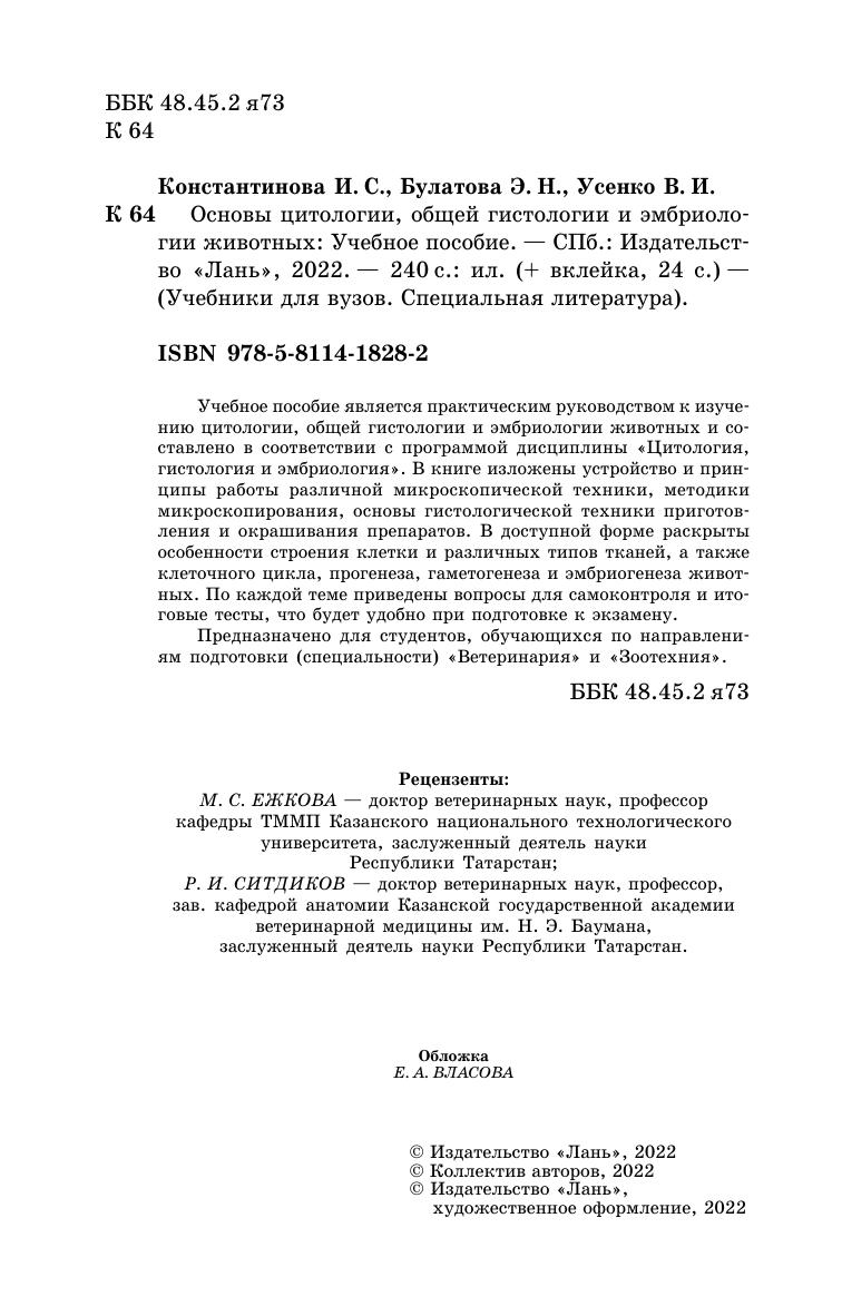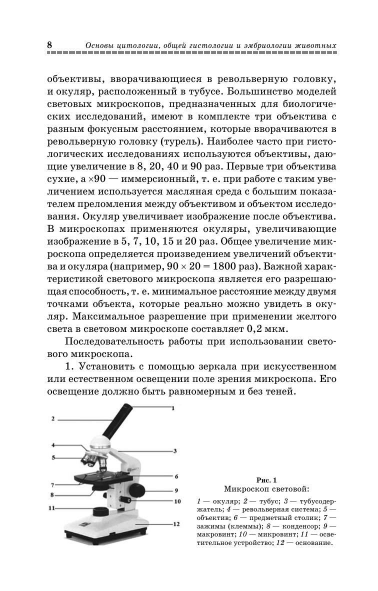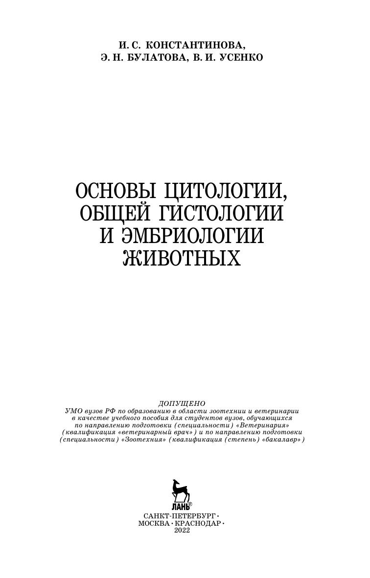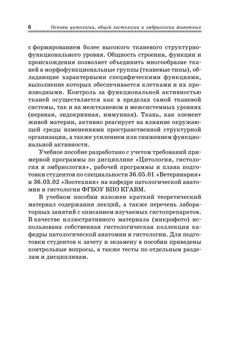 Составлено в соответствии с программой дисциплины «Цитология, гистология и эмбриология». Отражает вопросы: микроскопическая техника, описание устройства и принципа работы разных микроскопов, микроскопические исследования и основы гистологической техники окрашивания препаратов, схема строения клетки, клеточный цикл, прогенез, гаметогенез, особенности эмбриогенеза животных, типы тканей, особенности строения различных тканей. Приведены вопросы для самоконтроля и для подготовки к экзамену, задания для самостоятельной работы. Предназначено для студентов, обучающихся по специальности «Ветеринария» и направлению подготовки «Зоотехния».