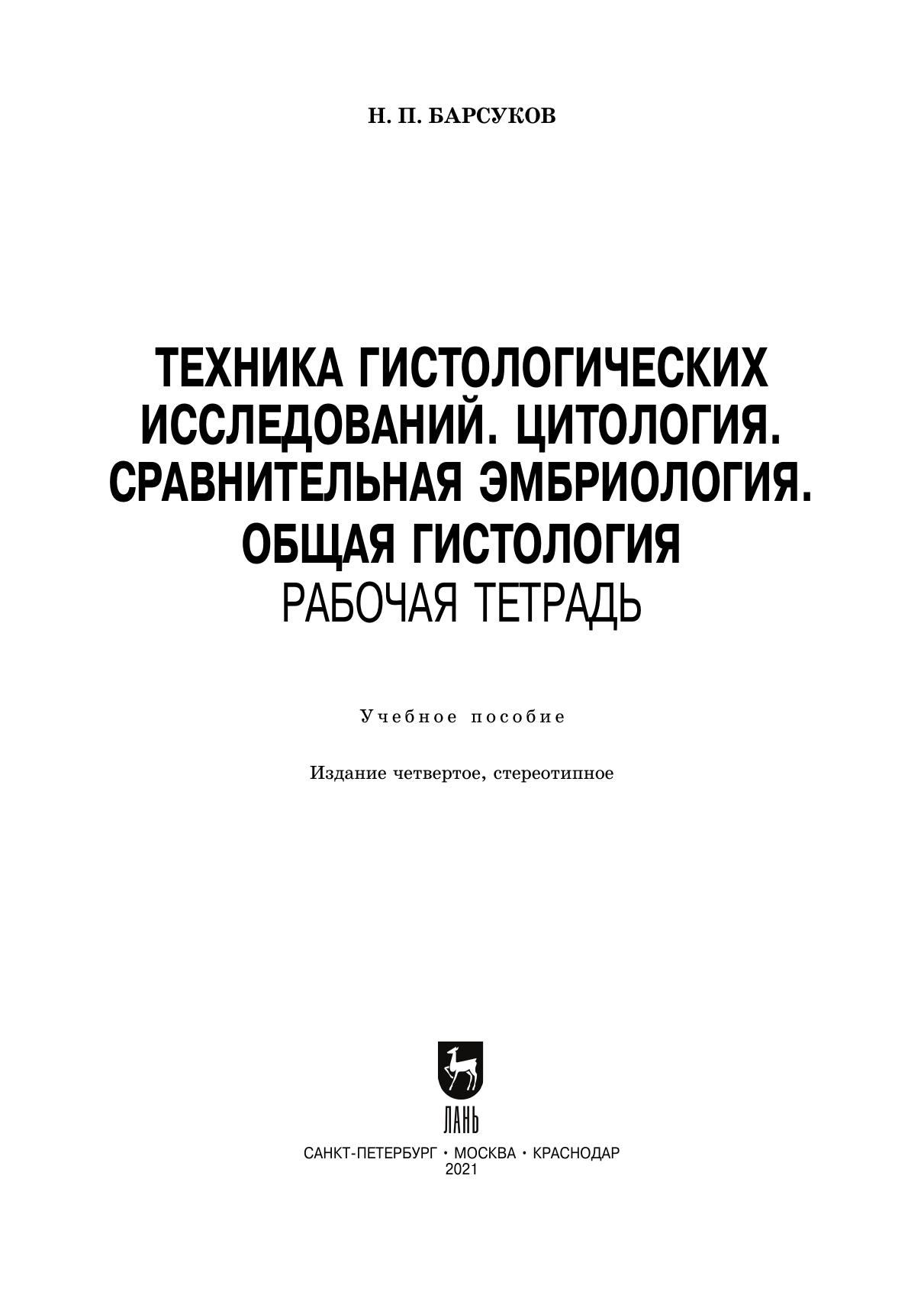 Техника гистологических исследований. Цитология. Сравнительная эмбриология. Общая гистология. Рабочая тетрадь