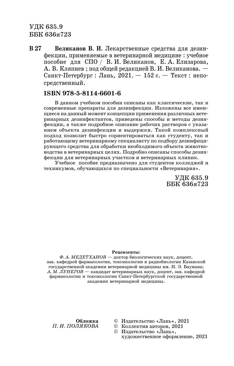 В данном учебном пособии описаны как классические, так и современные препараты для дезинфекции. Изложены все имеющиеся на данный момент концепции применения различных ветеринарных дезинфектантов, приведены способы и методы дезинфекции, приведено подробное описание рабочих растворов с указанием объекта дезинфекции и выдержки. Такой комплексный подход позволит быстро сориентироваться как студенту, так и работающему ветеринарному специалисту по подбору дезинфицирующего средства для обработки необходимого объекта животноводства или ветеринарии. Подробно описаны способы дезинфекции для ветеринарных участков и ветеринарных клиник.