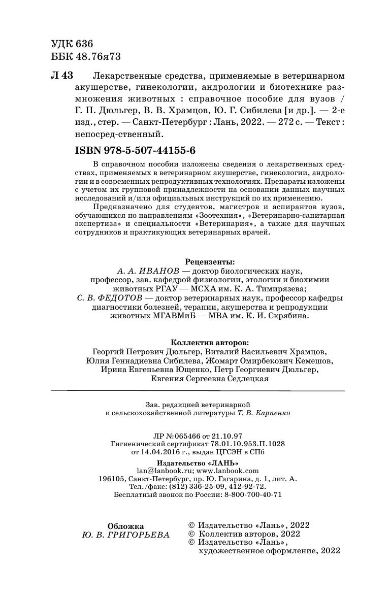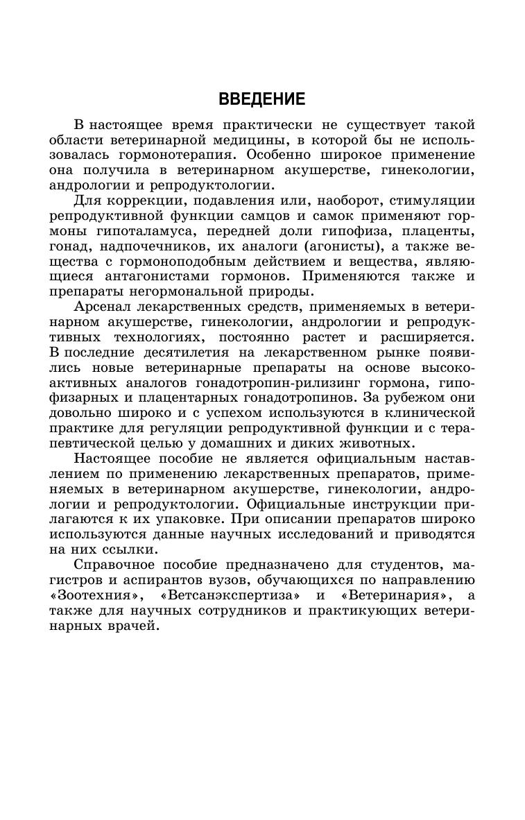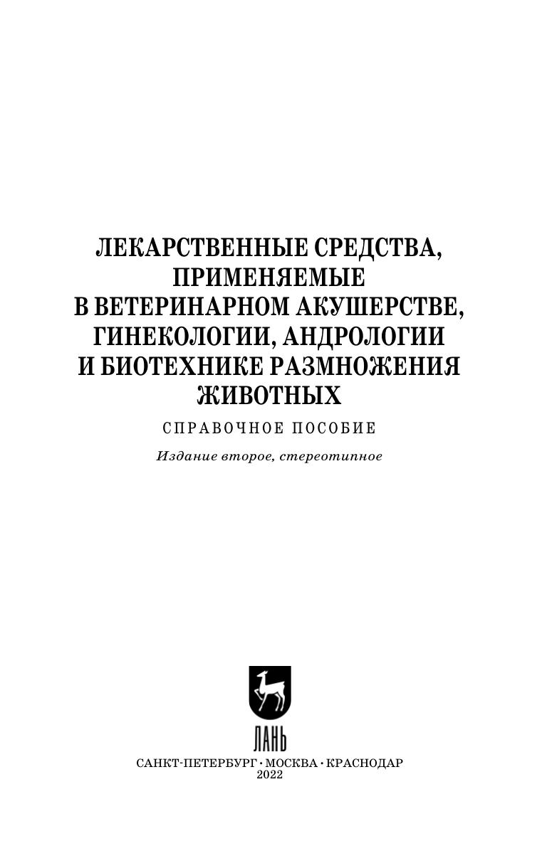В справочном пособии изложены сведения о лекарственных средствах, применяемых в ветеринарном акушерстве, гинекологии, андрологии и в современных репродуктивных технологиях. Препараты изложены с учетом их групповой принадлежности на основании данных научных исследований и/или официальных инструкций по их применению. Предназначено для студентов, магистров и аспирантов вузов, обучающихся по направлению «Зоотехния», «Ветеринарно-санитарная экспертиза» и специальности «Ветеринария», а также для научных сотрудников и практикующих ветеринарных врачей.