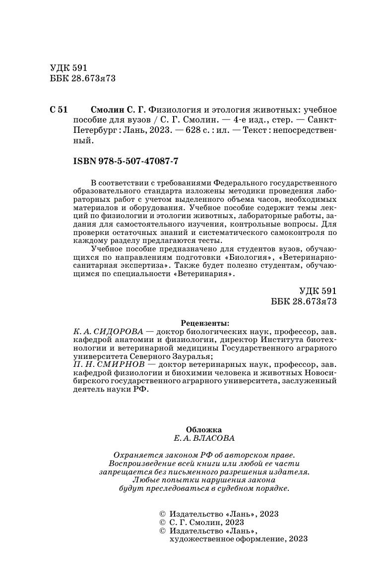 В соответствии с требованиями Федерального государственного образовательного стандарта изложены методики проведения лабораторных работ с учетом выделенного объема часов, необходимых материалов и оборудования. Учебное пособие содержит темы лекций по физиологии и этологии животных, лабораторные работы, задания для самостоятельного изучения, контрольные вопросы. Для проверки остаточных знаний и систематического самоконтроля по каждому разделу предлагаются тесты. Учебное пособие предназначено для студентов, обучающихся по направлениям подготовки «Биология», «Ветеринарно-санитарная экспертиза». Также будет полезно студентам, обучающимся по специальности «Ветеринария».