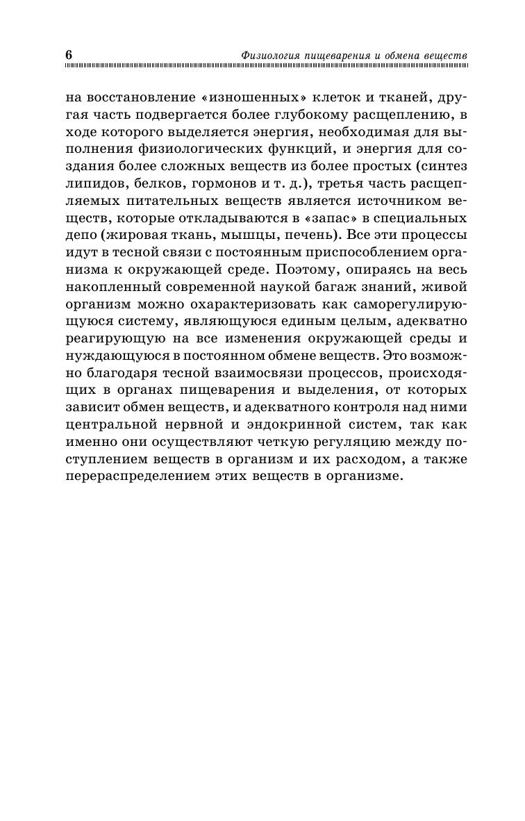 Учебное пособие посвящено важному разделу физиологии, необходимому для теоретической подготовки и практической деятельности различных специалистов. В доступной форме в нем изложены основные закономерности функционирования пищеварения и обмена веществ, что позволяет изучить основные механизмы и закономерности их регуляции в живом организме. Благодаря емкому раскрытию материала учебное пособие удобно при подготовке к экзамену. Книга может быть полезна для студентов высших профильных и непрофильных учебных заведений, а также для слушателей факультетов постдипломного образования, преподавателей высших учебных заведений и научных работников.
