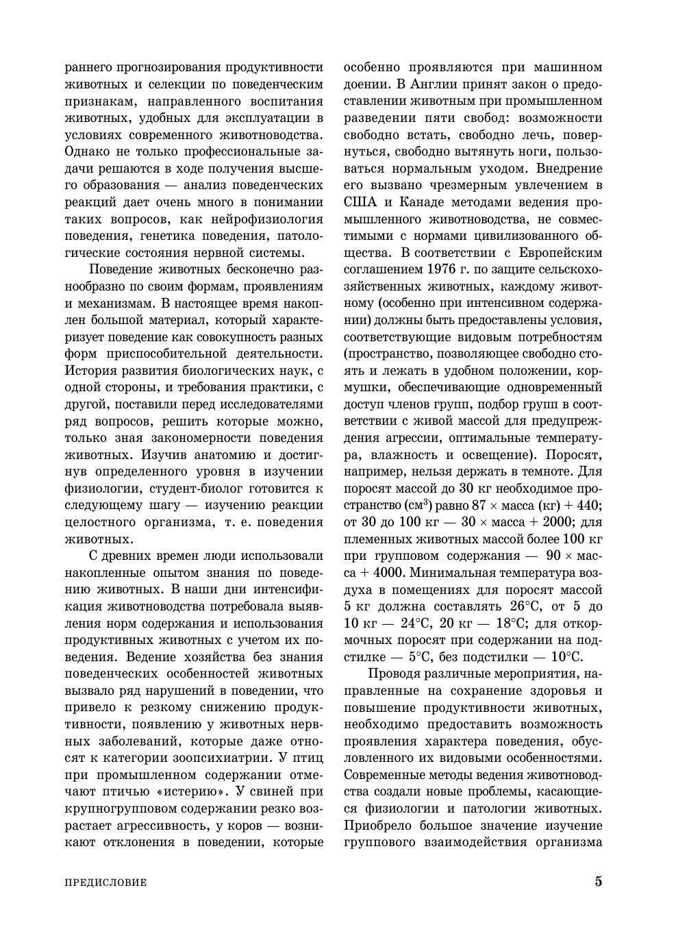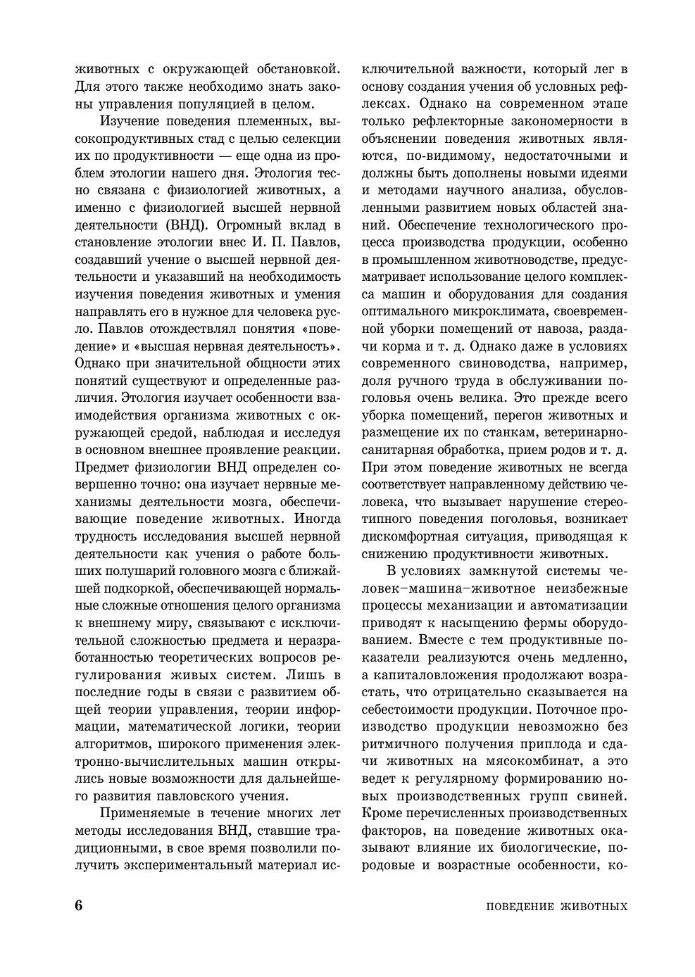 В книге приведены сведения по структуре исследований поведения животных. Эта дисциплина входит под названием «Этология животных» в программу обучения студентов по специальности «Зоотехния» и «Ветеринария» и входит в Государственный стандарт образования по этим специальностям. Подробно рассматриваются общие механизмы, определяющие поведение животных с учетом нейрофизиологических принципов формирования поведенческих актов. Вторая часть книги посвящена частной физиологии поведения животных как продуктивных, так и домашних. Учебное пособие предназначено для специалистов, связанных с содержанием и лечением животных: зоотехников ветеринарных врачей и технологов сельского хозяйства, а также студентов, изучающих определенные курсы физиологии.