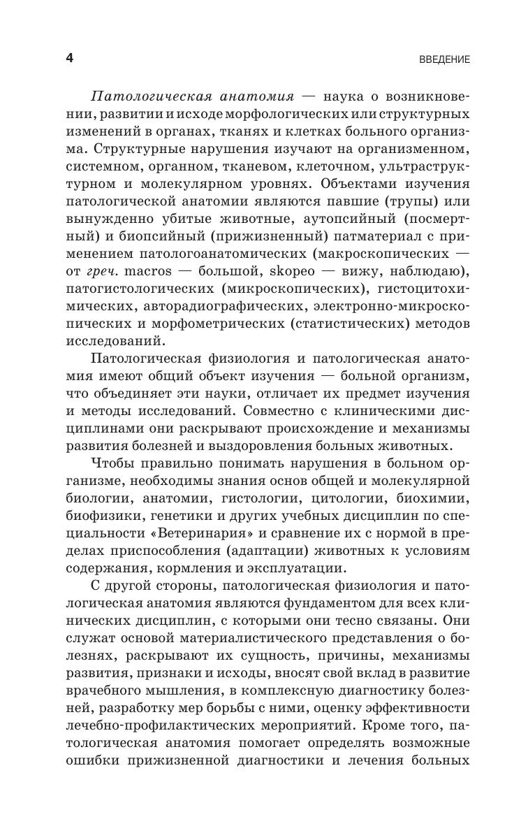 Раскрыты сущность болезни, ее этиология и патогенез, закономерности возникновения, развития и исходов патологических, функциональных и структурных изменений в больном организме. Рассмотрены атрофии, дистрофии, апоптоз и некроз, расстройства крово- и лимфообращения, воспалительные и компенсаторные процессы, генетическая патология, опухоли и лейкозы. Приведены изменения в органах и системах, характерные для незаразных, инфекционных, паразитарных и микотических болезней. Даны рекомендации по методике проведения лабораторно-практических занятий. Соответствует современным требованиям Федерального государственного образовательного стандарта среднего профессионального образования и профессиональным квалификационным требованиям. Для студентов средних специальных учебных заведений, обучающихся по специальности «Ветеринария».