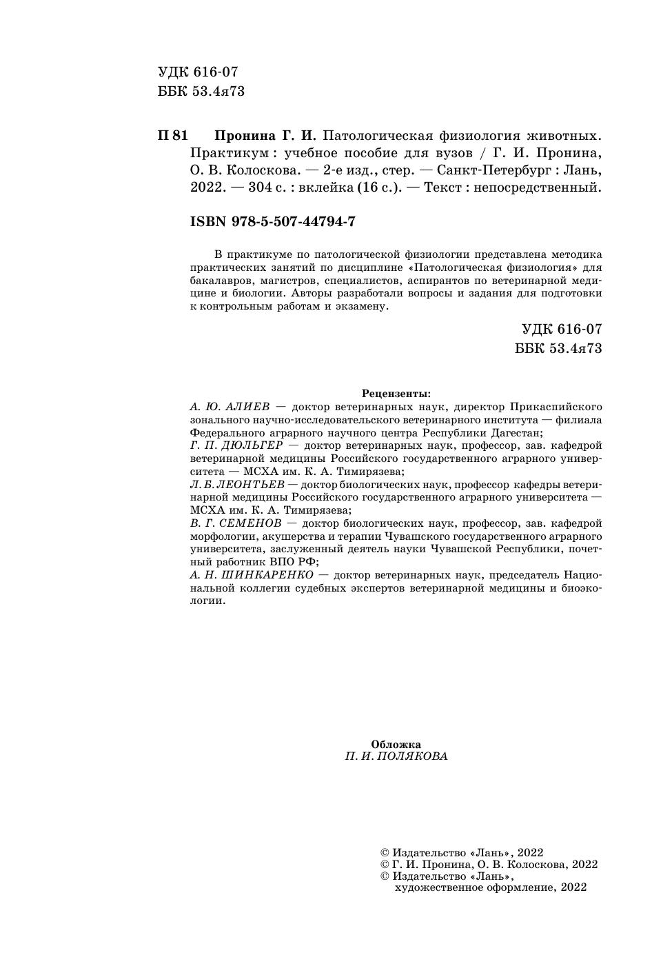 В практикуме по патологической физиологии представлена методика практических занятий по дисциплине «Патологическая физиология» для бакалавров, магистров, специалистов, аспирантов по ветеринарной медицине и биологии. Авторы разработали вопросы и задания для подготовки к контрольным работам и экзамену.