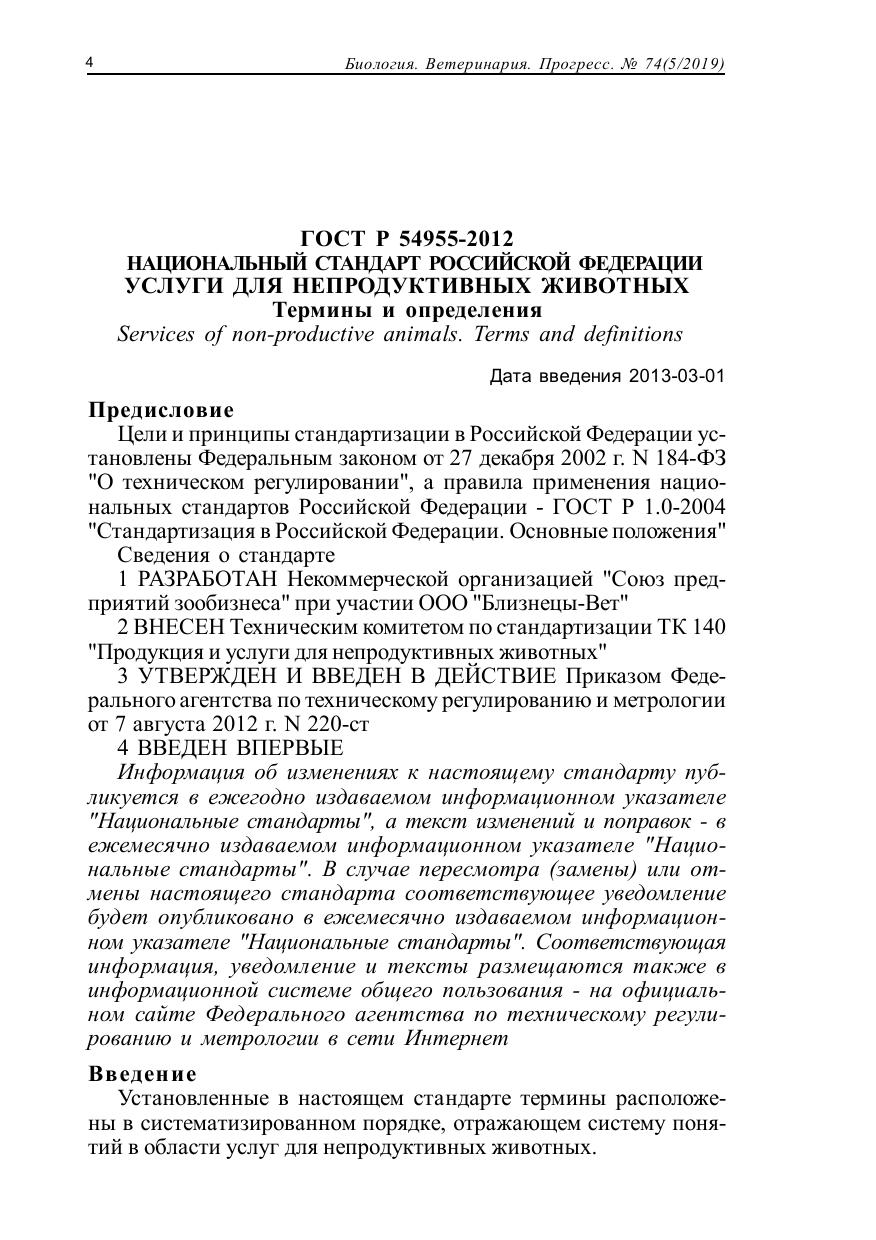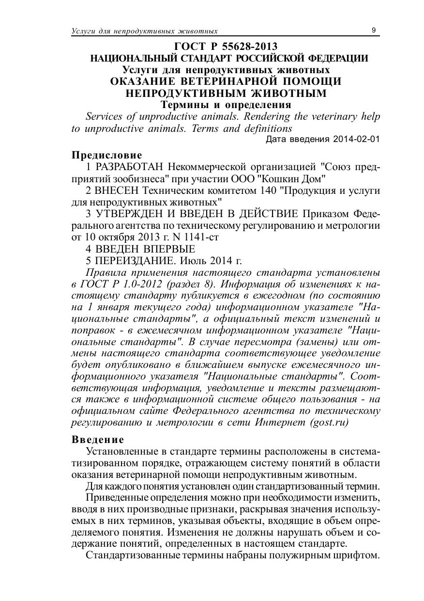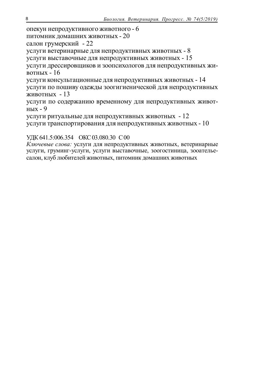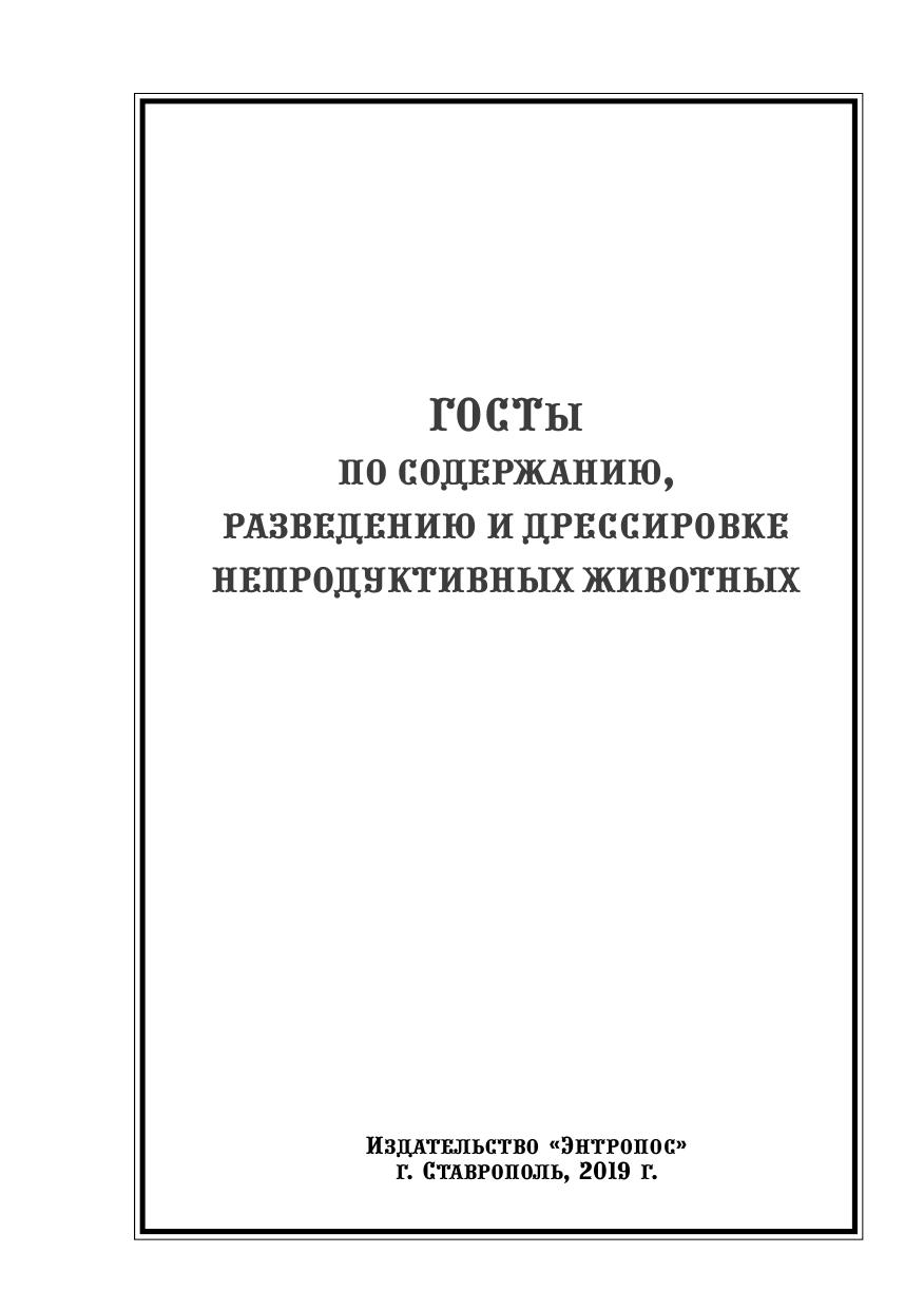 ГОСТы по содержанию, разведению и дрессировке непродуктивных животных