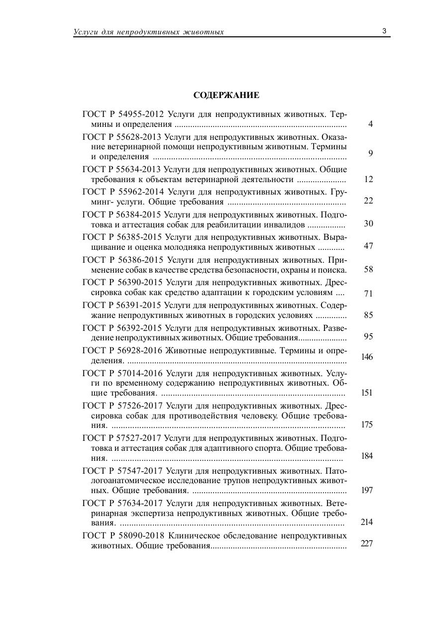 В сборнике представлены 17 ГОСТов - Национальных стандартов Российской Федерации по услугам для непродуктивных животных. ГОСТы устанавливают общие требования к объектам ветеринарной деятельности, к ветеринарной экспертизе, к клиническому обследованию и к оказанию ветеринарной помощи непродуктивным животным. Стандарты регламентируют груминг-услуги, выращивание и оценку молодняка, дрессировку, подготовку и аттестацию собак, содержание и разведение, а также вскрытие непродуктивных животных.
