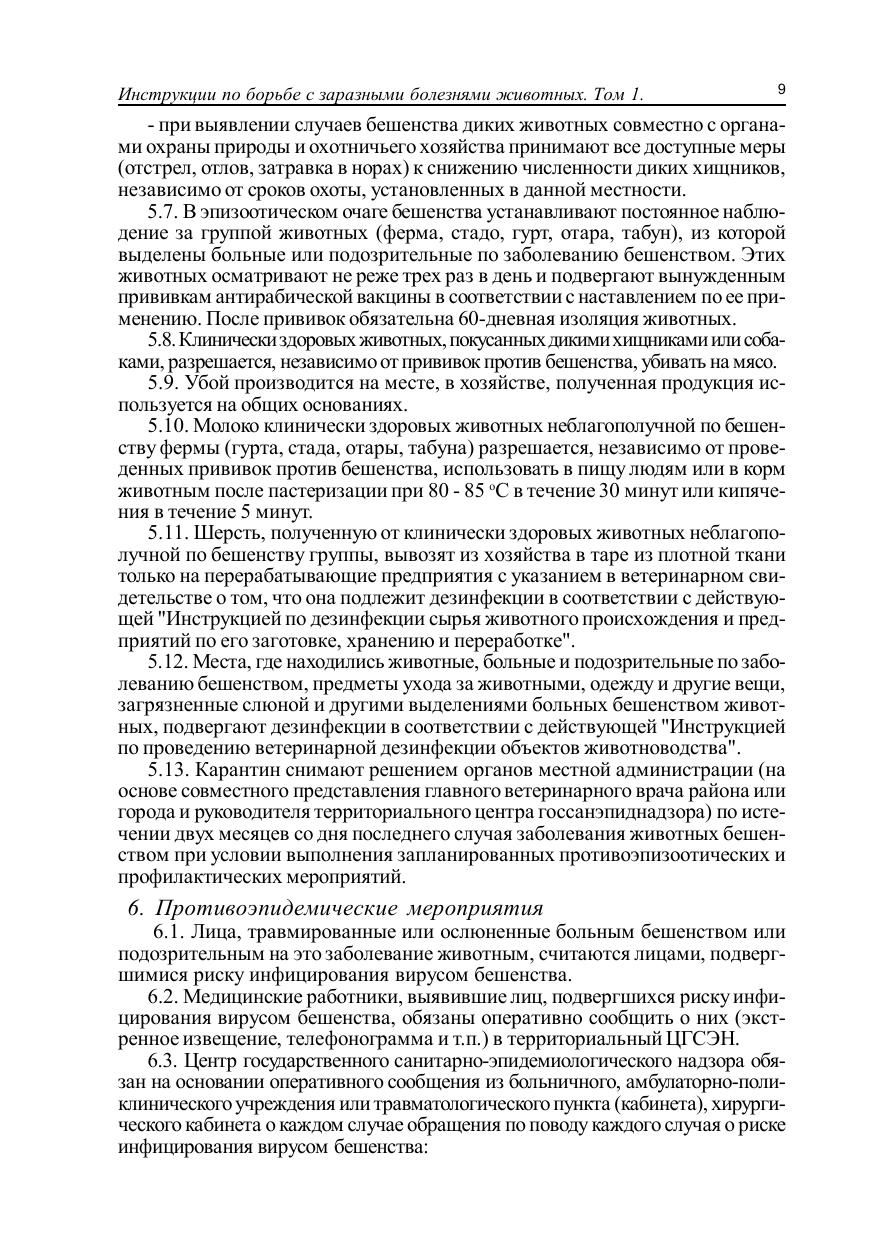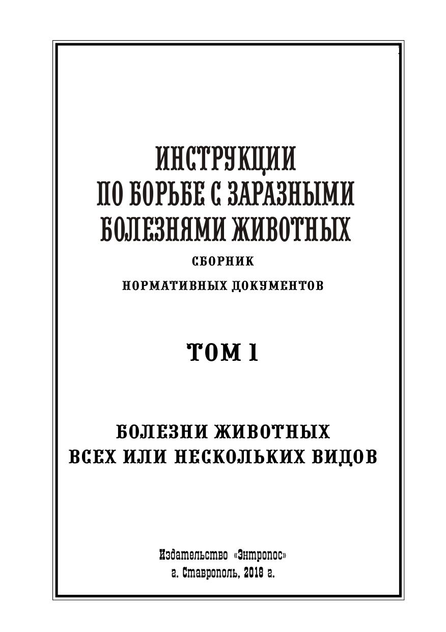Инструкции по борьбе с заразными болезнями животных: Сборник нормативных документов. Том 1. Болезни животных всех или нескольких видов