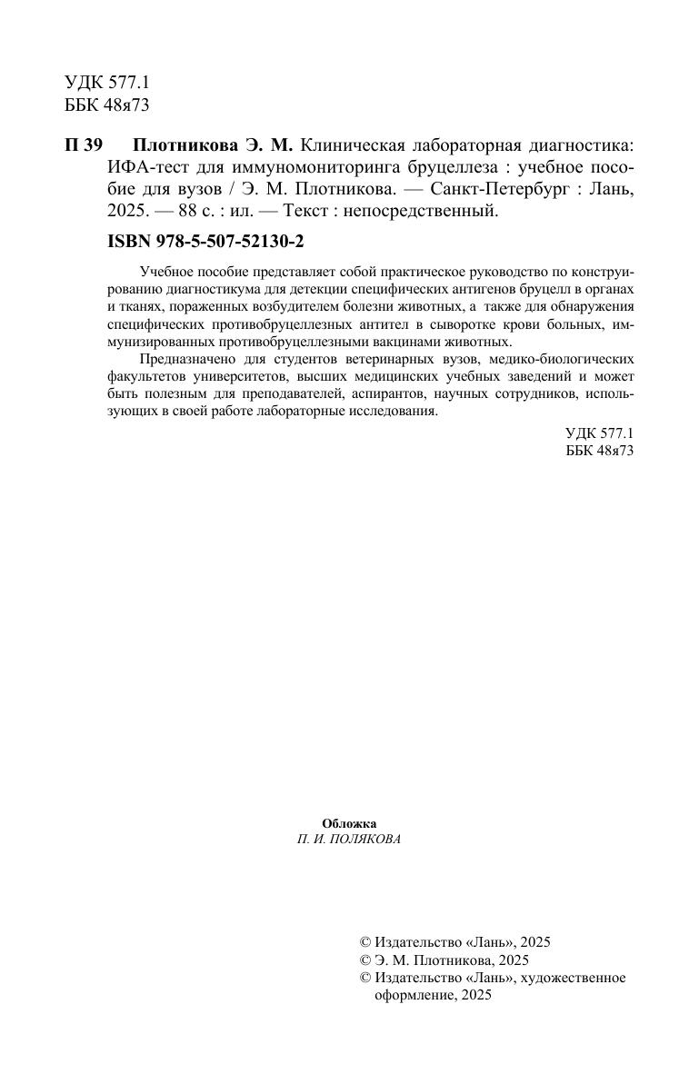 Учебное пособие представляет собой практическое руководство по конструированию диагностикума для детекции специфических антигенов бруцелл в органах и тканях, пораженных возбудителем болезни животных, а также для обнаружения специфических противобруцеллезных антител в сыворотке крови больных, иммунизированных противобруцеллезными вакцинами животных. Предназначено для студентов ветеринарных вузов, медико-биологических факультетов университетов, высших медицинских учебных заведений и может быть полезным для преподавателей, аспирантов, научных сотрудников, использующих в своей работе лабораторные исследования.