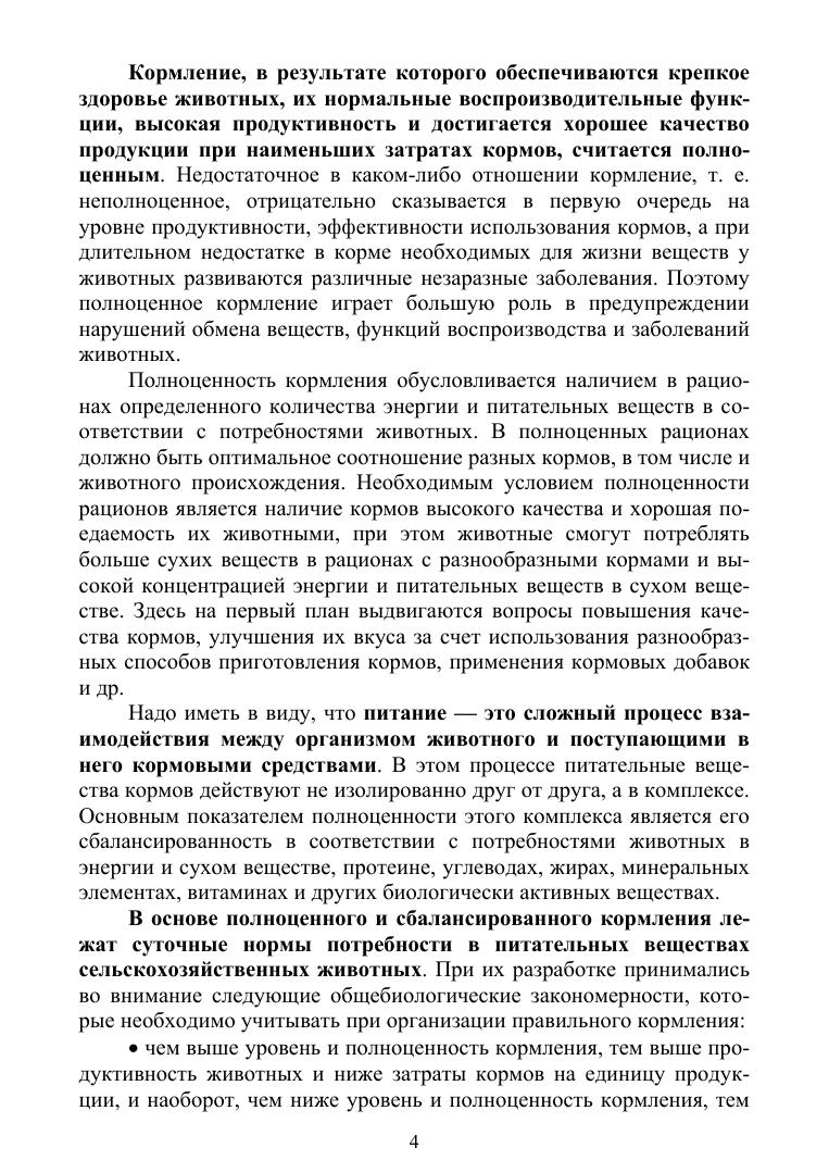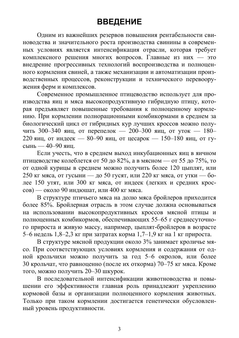Рассмотрены вопросы комплексной оценки питательности кормов для разных видов животных и их рационального использования. Приведены особенности нормирования полноценного кормления свиней, сельскохозяйственной птицы, кроликов, нутрий, норок, лисиц и песцов с учетом концентрации питательных и биологически активных веществ в сухом веществе рационов.