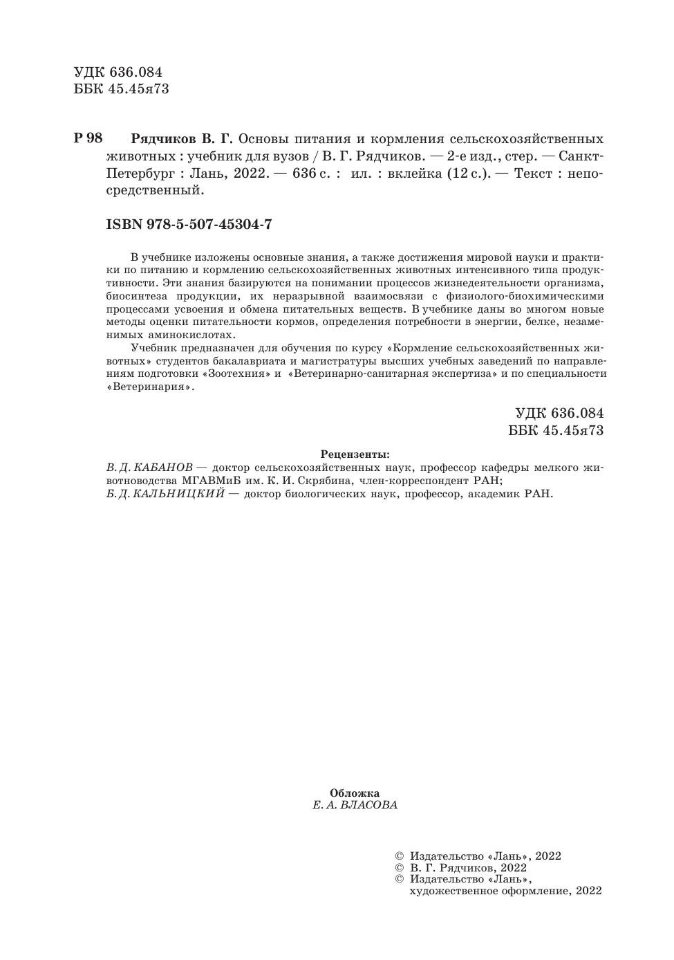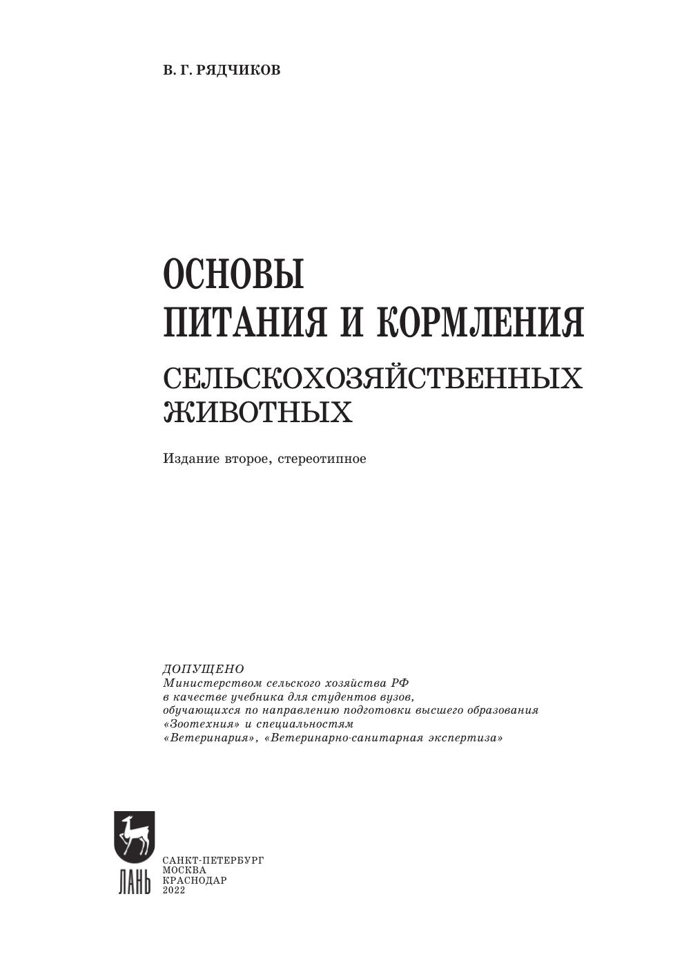 Учебник предназначен для обучения по курсу «Кормление сельскохозяйственных животных» студентов бакалавриата и магистратуры высших учебных заведений по направлениям подготовки «Зоотехния», «Ветеринарно-санитарная экспертиза» и по специальности «Ветеринария».