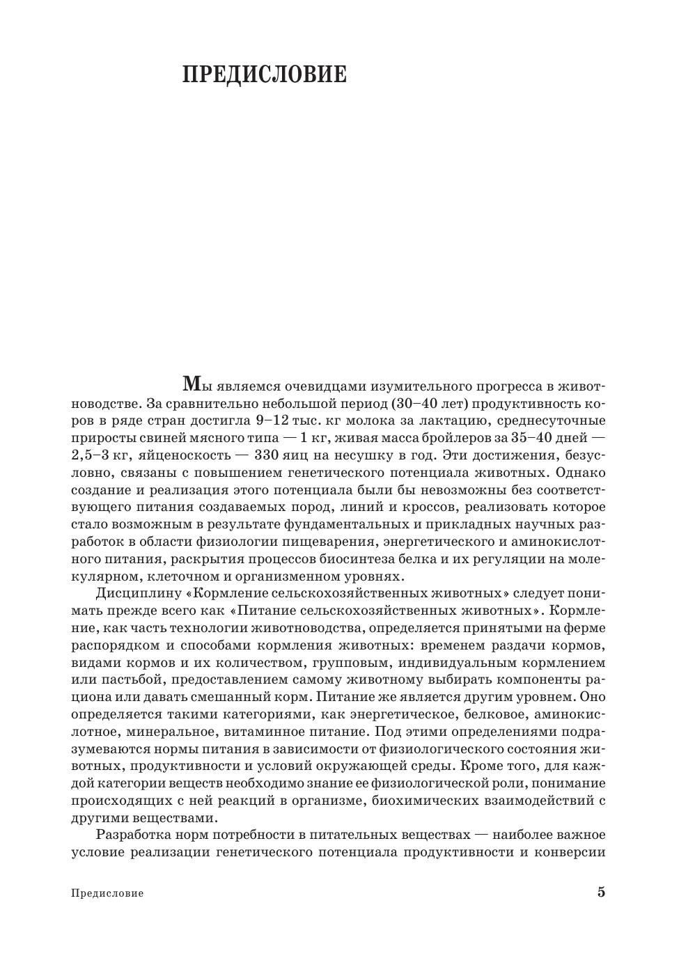 В учебнике изложены основные знания, а также достижения мировой науки и практики по питанию и кормлению сельскохозяйственных животных интенсивного типа продуктивности. Эти знания базируются на понимании процессов жизнедеятельности организма, биосинтеза продукции, их неразрывной взаимосвязи с физиолого-биохимическими процессами усвоения и обмена питательных веществ. Даны во многом новые методы оценки питательности кормов, определения потребности в энергии, белке, незаменимых аминокислотах.