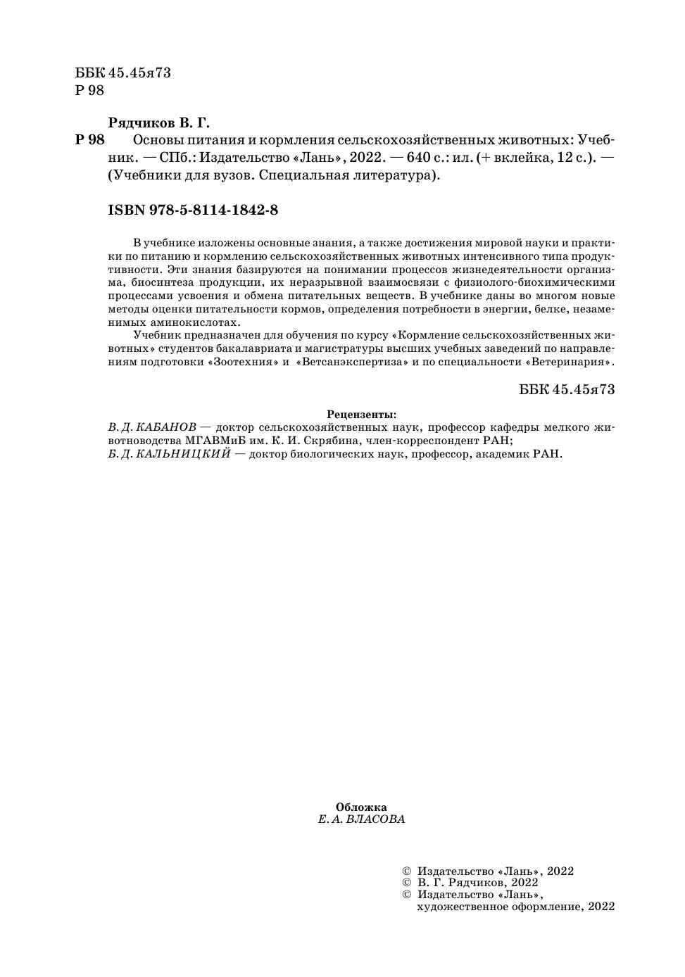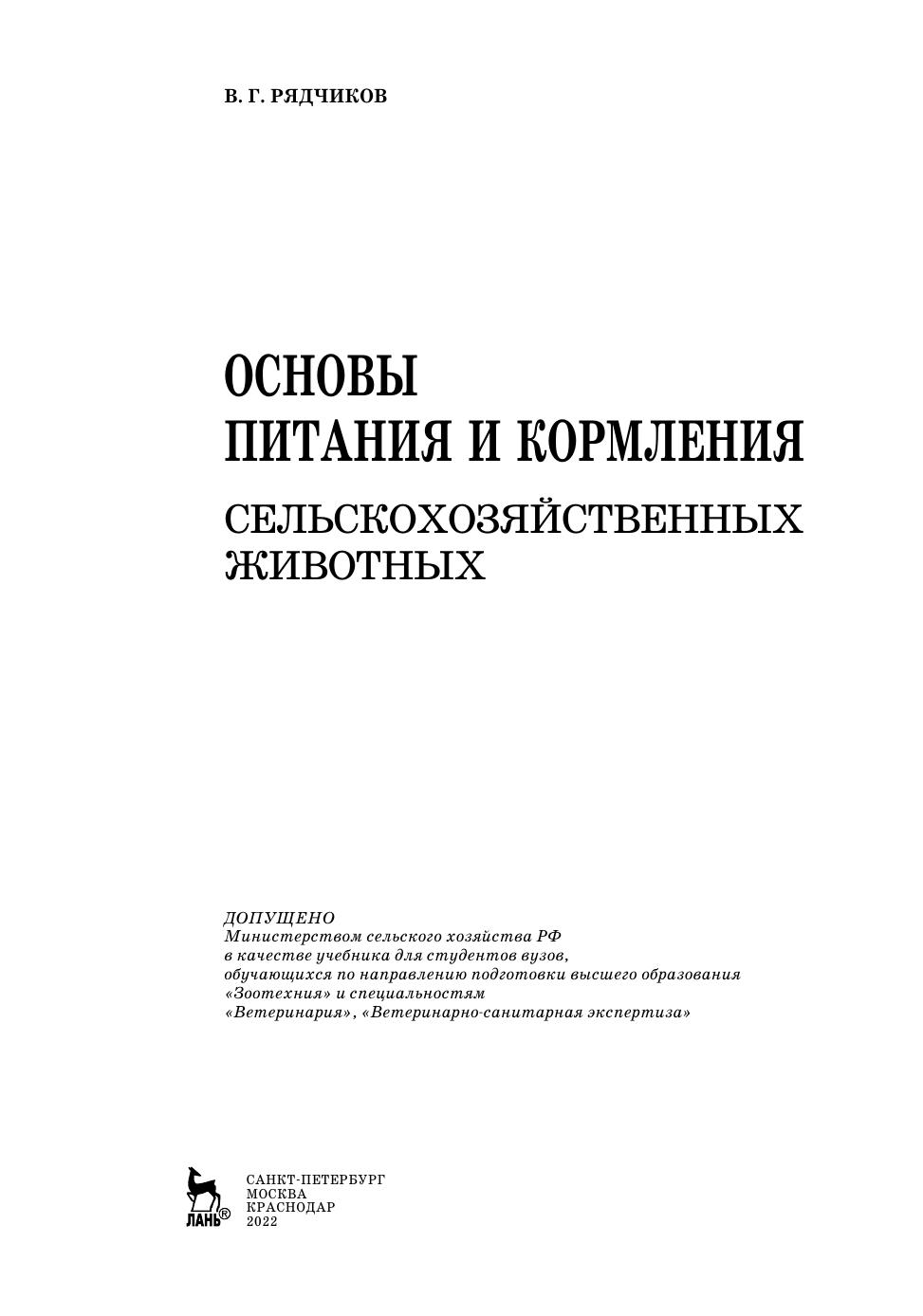 В учебнике изложены основные знания, а также достижения мировой науки и практики по питанию и кормлению сельскохозяйственных животных интенсивного типа продуктивности. Эти знания базируются на понимании процессов жизнедеятельности организма, биосинтеза продукции, их неразрывной взаимосвязи с физиолого-биохимическими процессами усвоения и обмена питательных веществ. В учебнике даны во многом новые методы оценки питательности кормов, определения потребности в энергии, белке, незаменимых аминокислотах. Учебник предназначен для обучения по курсу «Кормление сельскохозяйственных животных» студентов бакалавриата и магистратуры высших учебных заведений по направлению подготовки «Зоотехния» и по специальности «Ветеринария» и направлению «Ветсанэкспертиза».