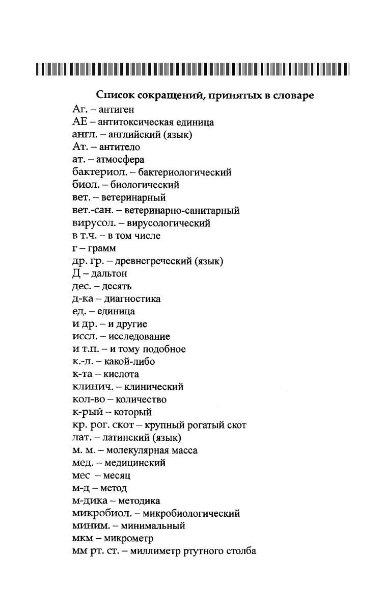 Краткий словарь микробиологических, вирусологических, иммунологических и эпизоотологических терминов