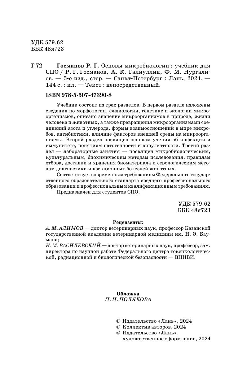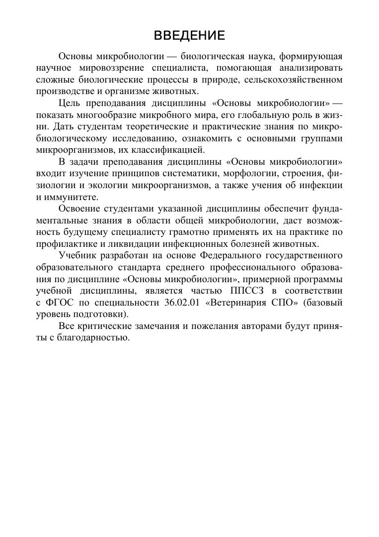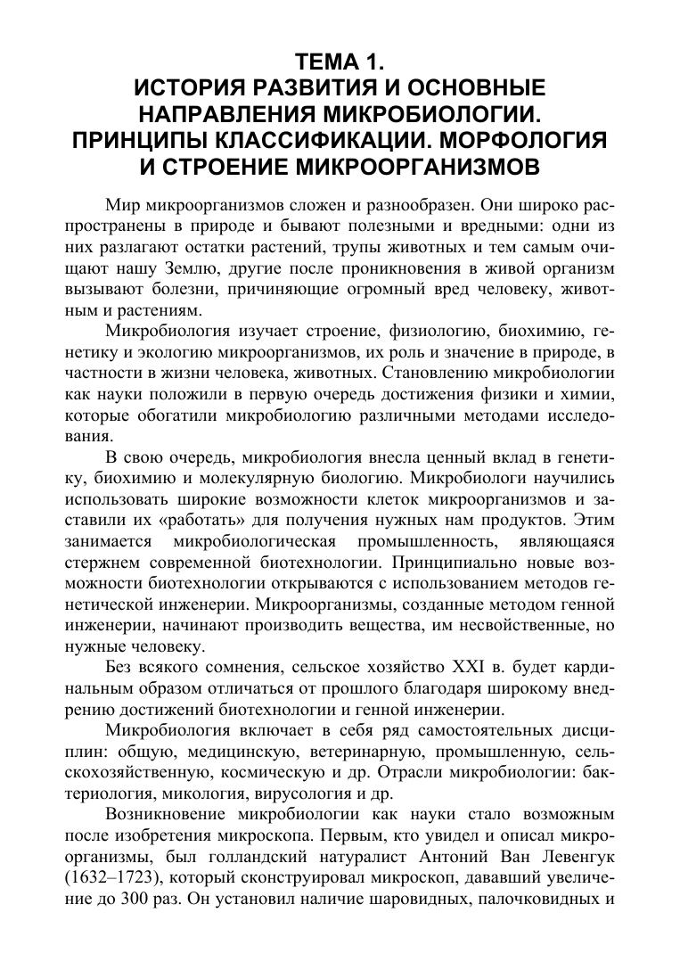 Учебник состоит из трех разделов. В первом разделе изложены сведения по морфологии, физиологии, генетике и экологии микроорганизмов, описано значение микроорганизмов в природе, жизни человека и животных, а также превращения микроорганизмами соединений азота и углерода, формы взаимоотношений в мире микробов, антибиотики, влияние факторов внешней среды на микроорганизмы.Второй раздел посвящен основам учения об инфекции и иммунитете, понятиям патогенности и вирулентности.Третий раздел — лабораторные занятия — посвящен микробиологическим, культуральным, биохимическим методам исследования, правилам отбора, доставки и хранения биоматериала и серологическим методам диагностики инфекционных болезней животных. Соответствует современным требованиям Федерального государственного образовательного стандарта среднего профессионального образования и профессиональным квалификационным требованиям. Предназначен для студентов СПО.