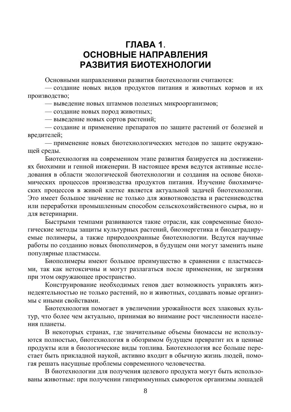 В учебном пособии изложены задачи ветеринарной биотехнологии в части производства биологически активных препаратов. Показано значение микробиологии и вирусологии в биотехнологическом процессе. Описаны объекты биотехнологического процесса, роль генной инженерии и энзимологии, инженерно-технического обеспечения, особенности культивирования бактерий, клеток и вирусов в промышленных условиях. Технология изготовления вакцин, диагностикумов, бактериофагов, аллергенов, антибиотиков, ферментов, гормонов, витаминов и пробиотиков. Рассмотрены вопросы биобезопасности предприятий биологической промышленности, а также организация микробиологического контроля производства. Учебное пособие предназначено для студентов высших учебных заведений, обучающихся по специальности «Ветеринария» и направлениям подготовки «Ветеринарно-санитарная экспертиза» и «Ветеринарная биотехнология».
