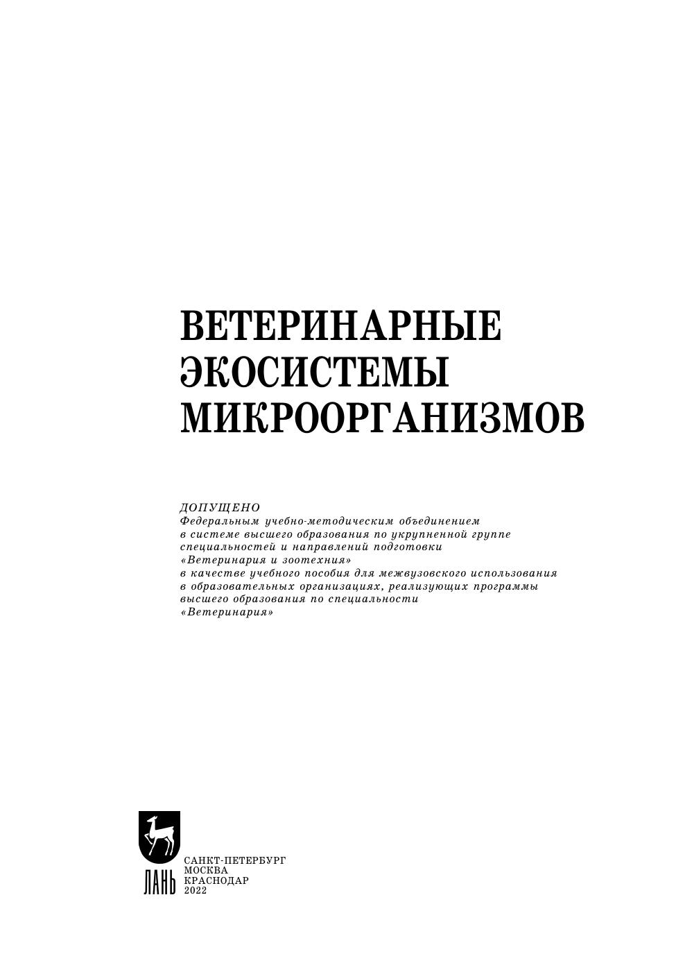 Учебное пособие предназначено для бакалавров, магистров, студентов и аспирантов по направлениям подготовки «Ветеринарно-санитарная экспертиза», «Зоотехния» и специальности «Ветеринария». Также будет полезно слушателям курсов дополнительного профессионального образования, практикующим ветеринарным врачам, преподавателям и специалистам в области ветеринарной микробиологии и экологии, а также лабораторной диагностики инфекционных болезней животных и птицы.