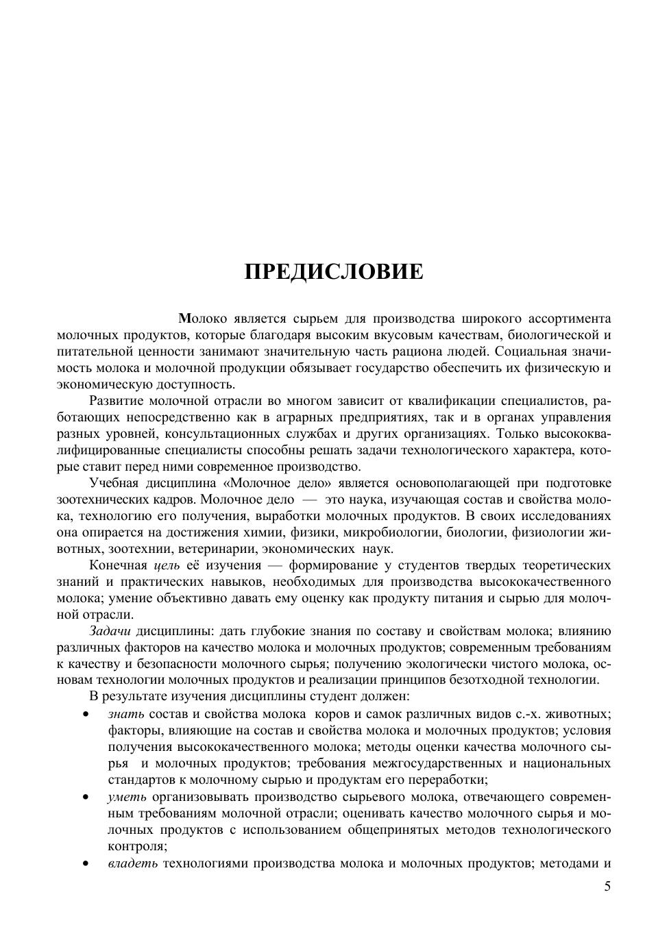 Изложены сведения о составе и свойствах молока как сырья для молочной отрасли, рассмотрены современные требования к его качеству и безопасности, условия получения высококачественного молока, основы технологии молочных продуктов и рационального использования побочных продуктов переработки молока. Учебник «Молочное дело» предназначен для студентов аграрных вузов, обучающихся по направлению подготовки «Зоотехния» (бакалавр).