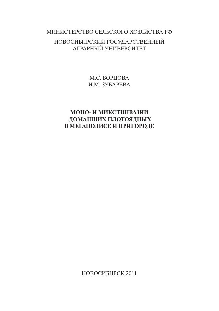 В монографии обобщены результаты научных исследований авторов по гельминтозам и микстинвазиям домашних плотоядных животных в г. Новосибирске и его пригороде, приведены данные по использованию антгельминтных препаратов. Монография предназначена для широкого круга ветеринарных специалистов, сотрудников НИИ ветеринарного профиля, студентов ветеринарных вузов. Утверждена и рекомендована к изданию научно-методическим советом Института ветеринарной медицины НГАУ (протокол № 29 от 4 марта 2010 г.).