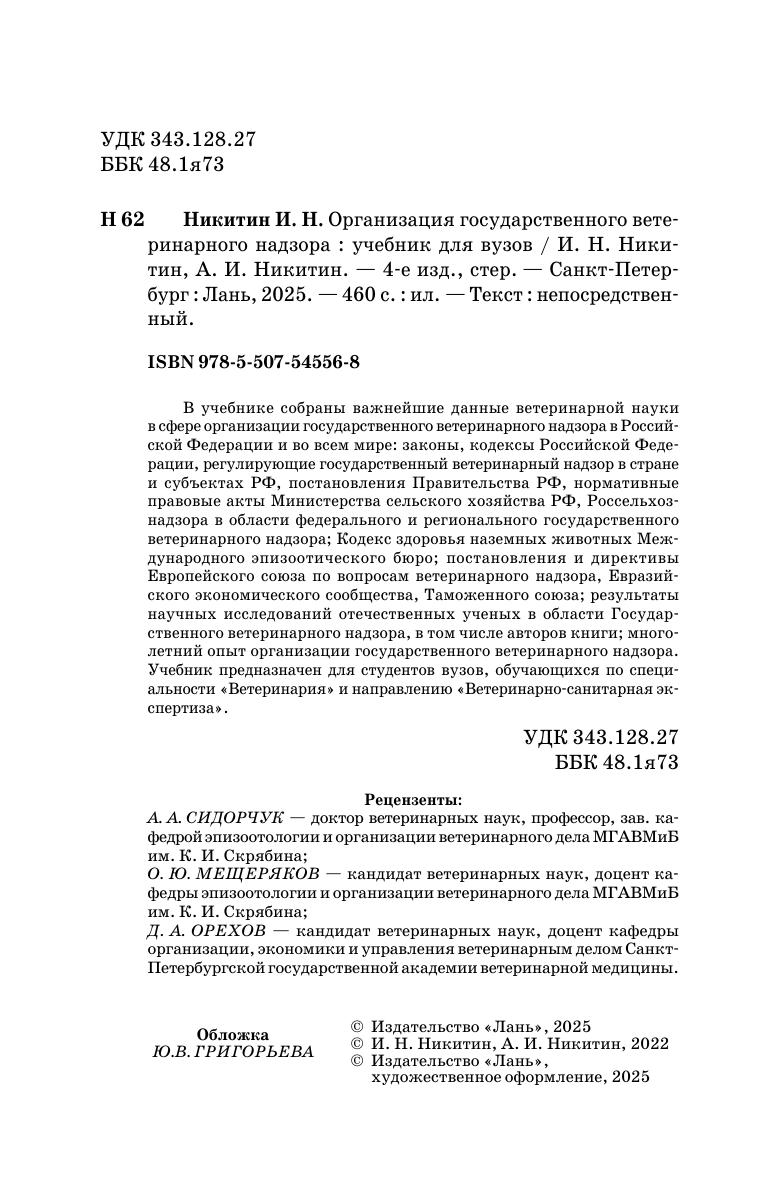 В учебнике собраны важнейшие данные ветеринарной науки в сфере организации государственного ветеринарного надзора в Российской Федерации и во всем мире: законы, кодексы Российской Федерации, регулирующие государственный ветеринарный надзор в стране и субъектах РФ, постановления Правительства РФ, нормативные правовые акты Министерства сельского хозяйства РФ, Россельхознадзора в области федерального и регионального государственного ветеринарного надзора, Кодекс здоровья наземных животных Международного эпизоотического бюро, постановления и директивы Европейского союза по вопросам ветеринарного надзора, Евразийского экономического сообщества, Таможенного союза, результаты научных исследований отечественных ученых в области Государственного ветеринарного надзора, в том числе авторов книги, многолетний опыт организации государственного ветеринарного надзора. Учебник предназначен для студентов, обучающихся по специальности «Ветеринария» и направлению «Ветеринарно-санитарная экспертиза».