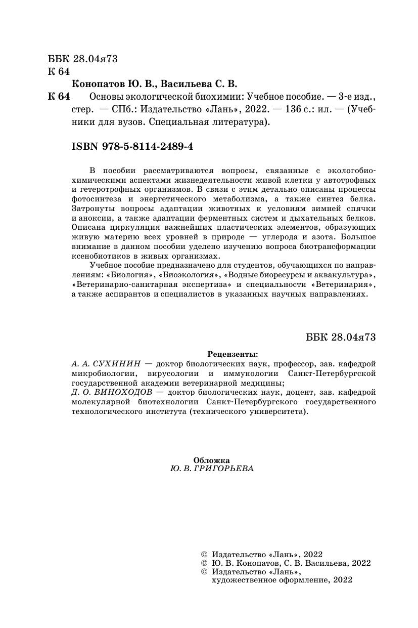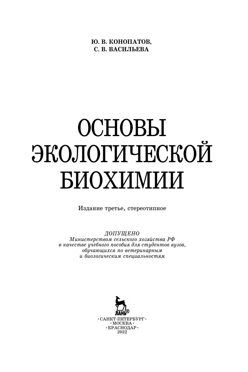В пособии рассматриваются вопросы, связанные с эколого-биохимическими аспектами жизнедеятельности живой клетки у автотрофных и гетеротрофных организмов. В связи с этим детально описаны процессы фотосинтеза и энергетического метаболизма, а также синтез белка. Затронуты вопросы адаптации животных к условиям зимней спячки и аноксии, а также адаптации ферментных систем и дыхательных бел-ков. Описана циркуляция важнейших пластических элементов, образующих живую материю всех уровней в природе — углерода и азота. Большое внимание в данном пособии уделено изучению вопроса биотрансформации ксенобиотиков в живых организмах. Учебное пособие предназначено для студентов, обучающихся по направлениям: «Биология», «Биоэкология», «Водные биоресурсы и аквакультура», «Ветеринарно-санитарная экспертиза» и специальности «Ветеринария», а также аспирантов и специалистов в указанных научных направлениях. Авторы выражают надежду, что книга окажет помощь в изучении экологической биохимии всем заинтересованным данной дисциплиной.
