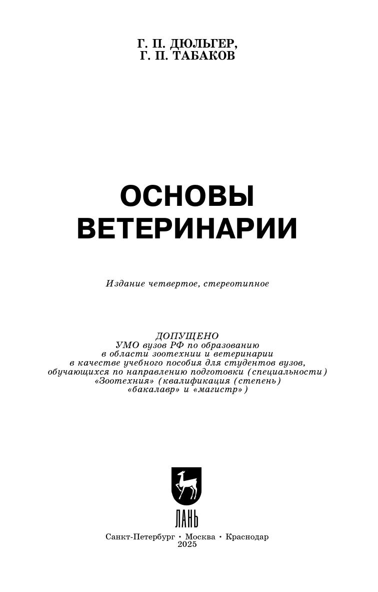 В учебном пособии рассмотрены вопросы патологической анатомии и физиологии, фармакологии, основы диагностики, лечения и профилактики внутренних незаразных, хирургических, инфекционных и инвазионных болезней животных, птиц и рыб. Представлены современные взгляды на патогенез различных заболеваний и состояний. Пособие предназначено для студентов высших учебных заведений, обучающихся по направлению подготовки «Зоотехния».