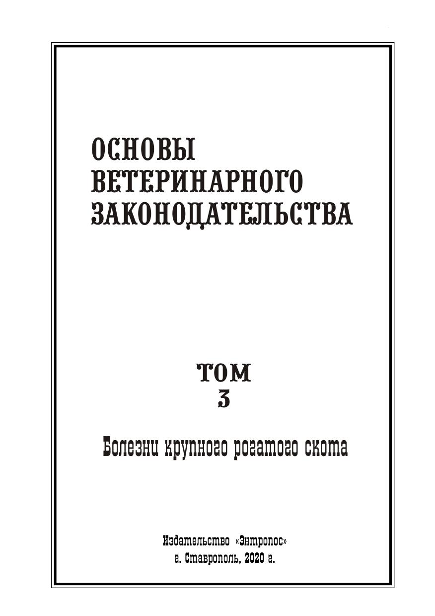 Основы ветеринарного законодательства. Том 3. Болезни крупного рогатого скота