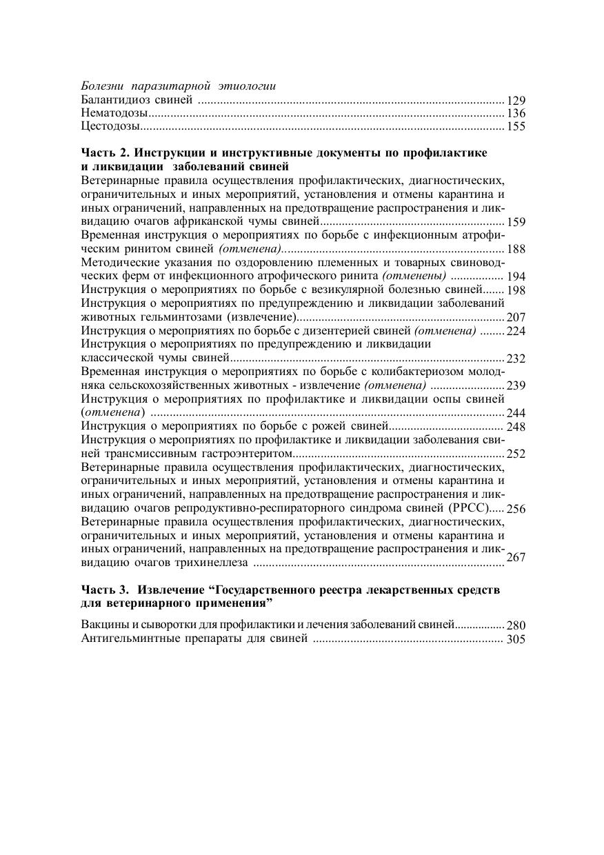 В книгу также включены ветеринарные правила содержания свиней и перечень вакцин, сывороток и антигельминтиков, входящих в "Государственный реестр лекарственных средств для ветеринарного применения" для лечения и профилактики заболеваний свиней.